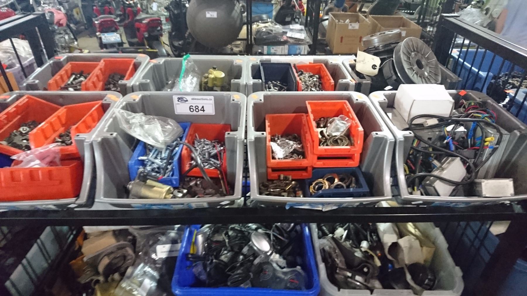 SHELF OF ASSORTED MOTORCYCLE/SCOOTER PARTS