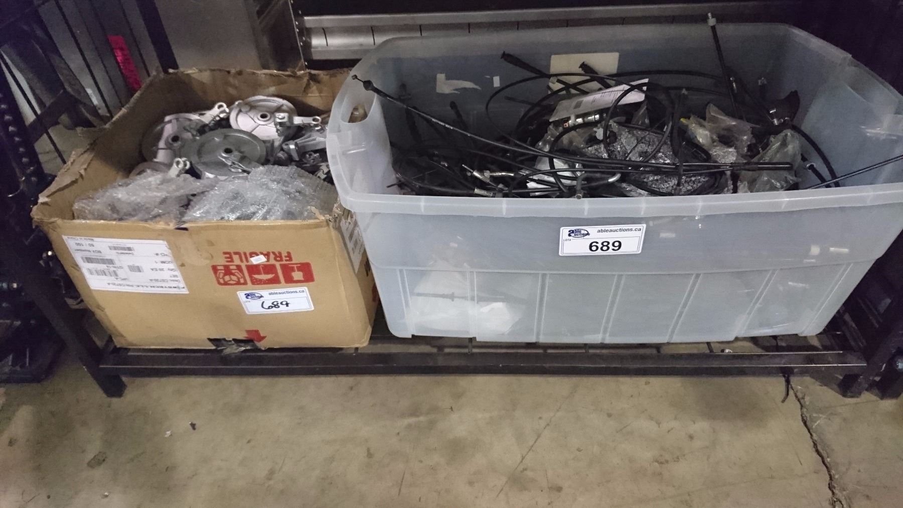 SHELF OF ASSORTED MOTORCYCLE/SCOOTER PARTS