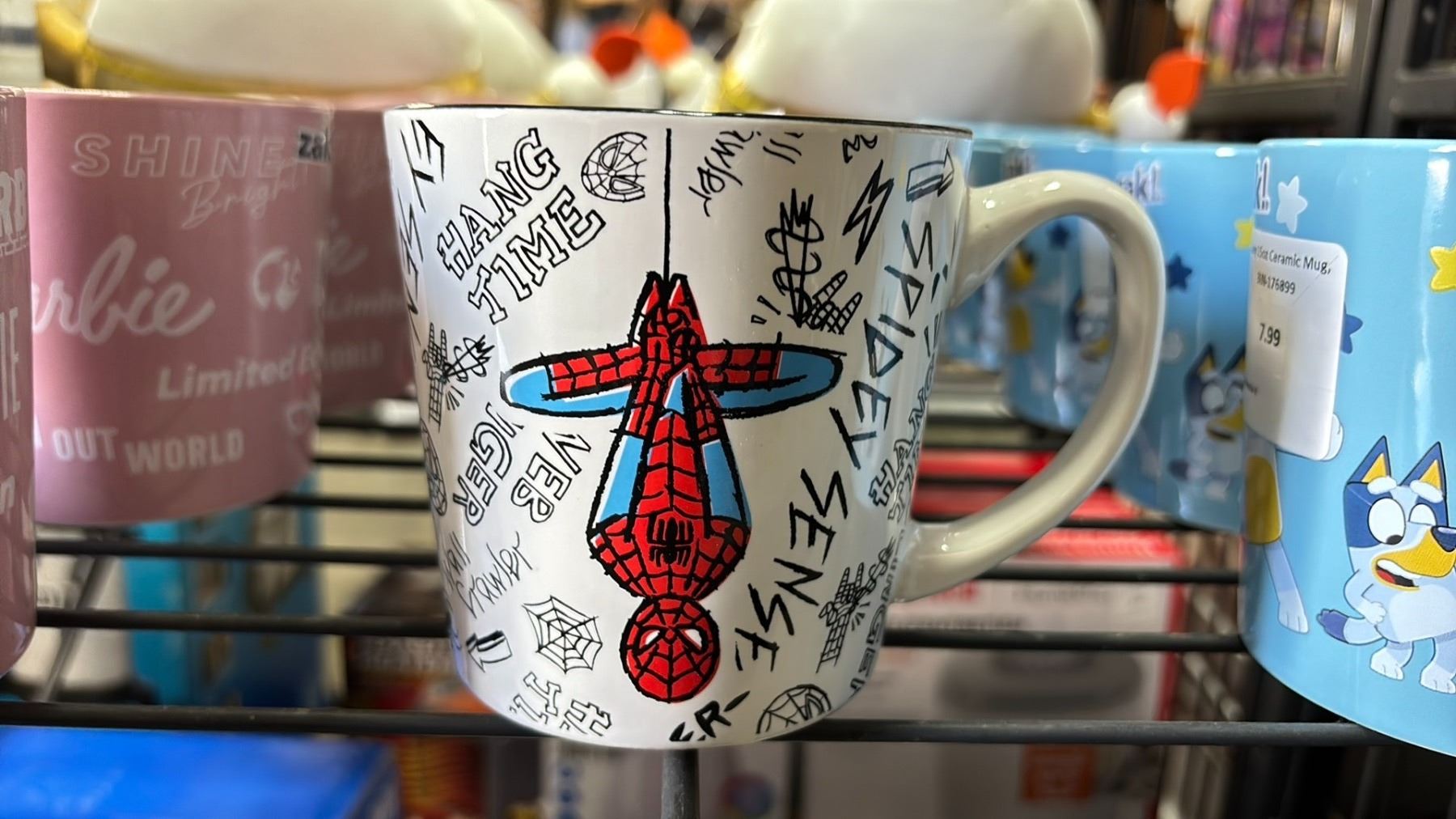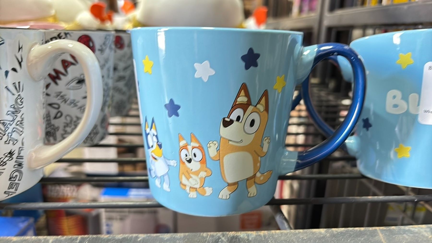 SHELF OF ASSORTED MUGS, PLATES, THERMOS FOOD JARS, FOOD STORAGE CONTAINERS & MORE