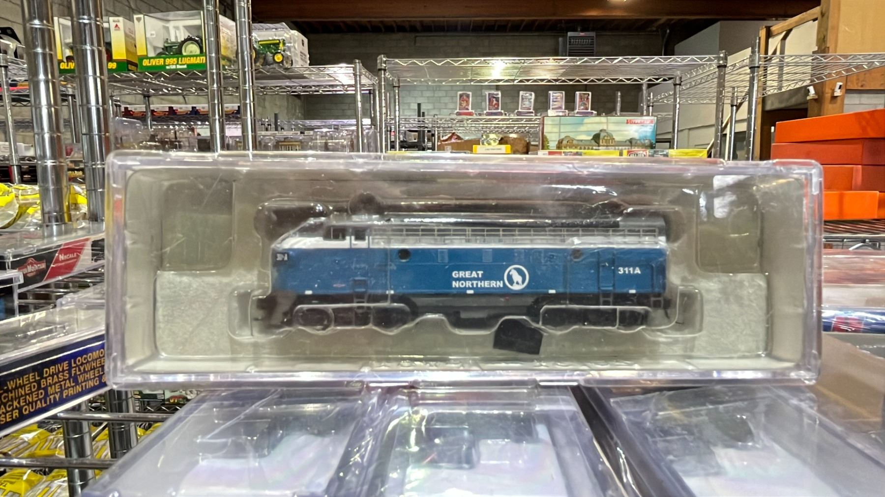 SHELF OF ASSORTED N SCALE MODEL TRAINS - INTERMOUNTAIN RAILWAY CO, ATLAS & FOX VALLEY MODELS *SOME HAVE SOUND*