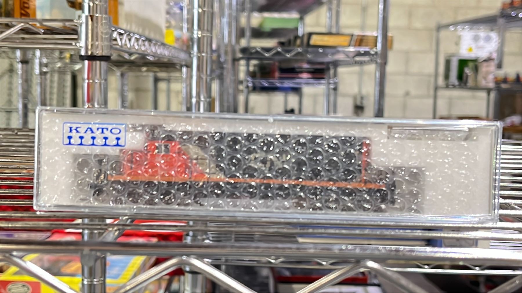 SHELF OF ASSORTED N SCALE MODEL TRAINS - KATO, ATHEARN, INTERMOUNTAIN RAILWAY CO & RAPIDO TRAINS