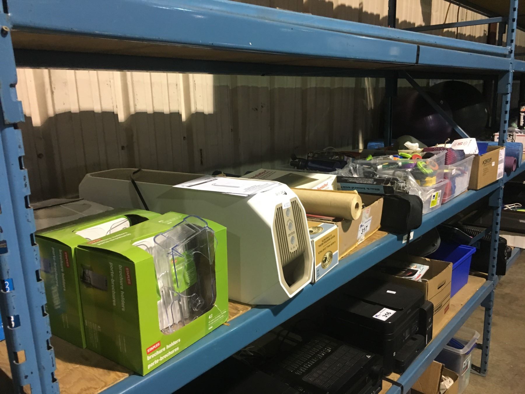 SHELF OF ASSORTED OFFICE AND PARTY SUPPLIES