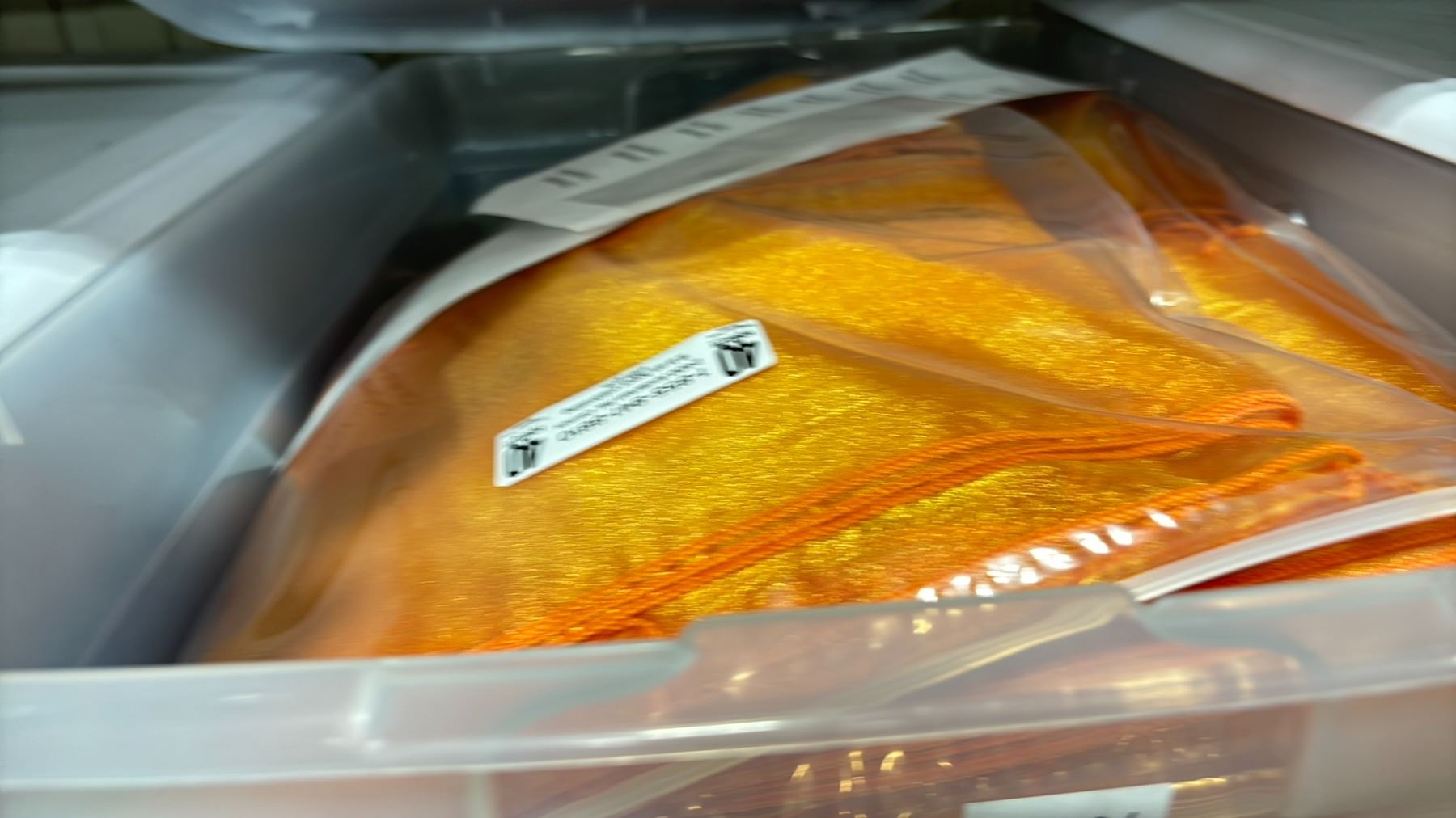 SHELF OF ASSORTED ORGANZA EVENT DECORATING FABRIC / TABLE RUNNERS / CHAIR BOWS / TABLE COVERS *BINS INCLUDED*
