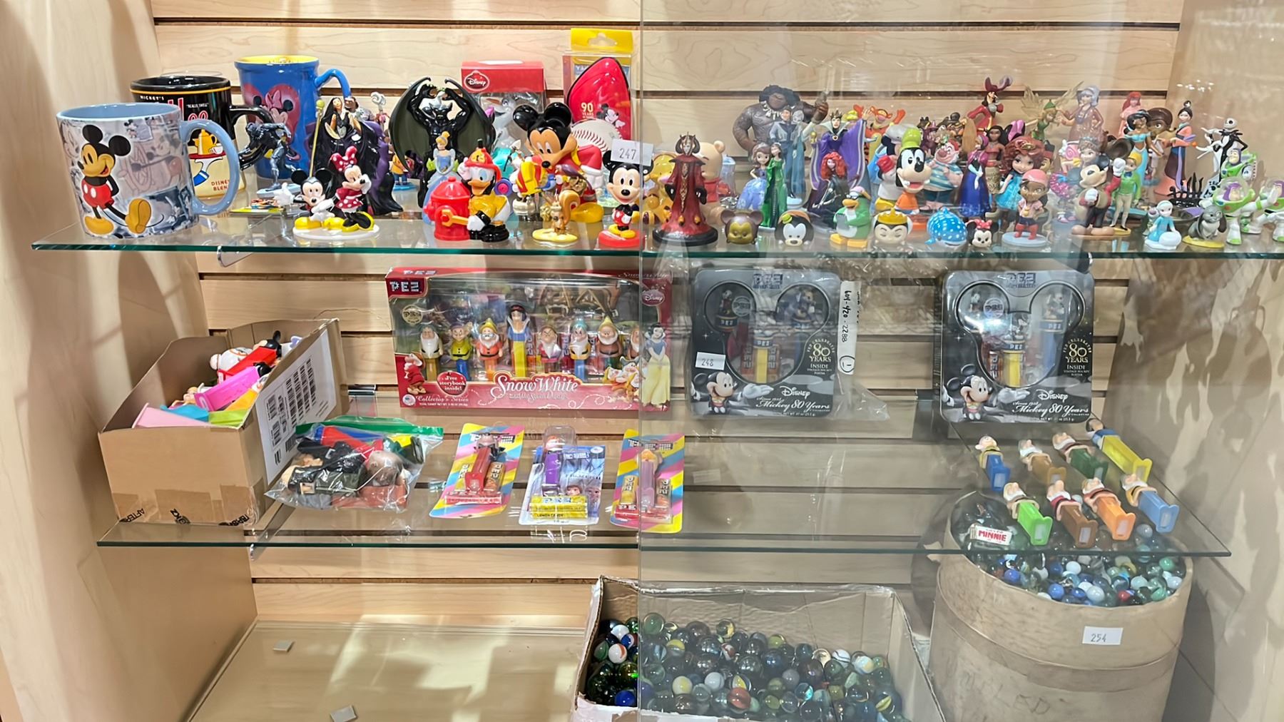 SHELF OF ASSORTED PEZ DISPENSERS