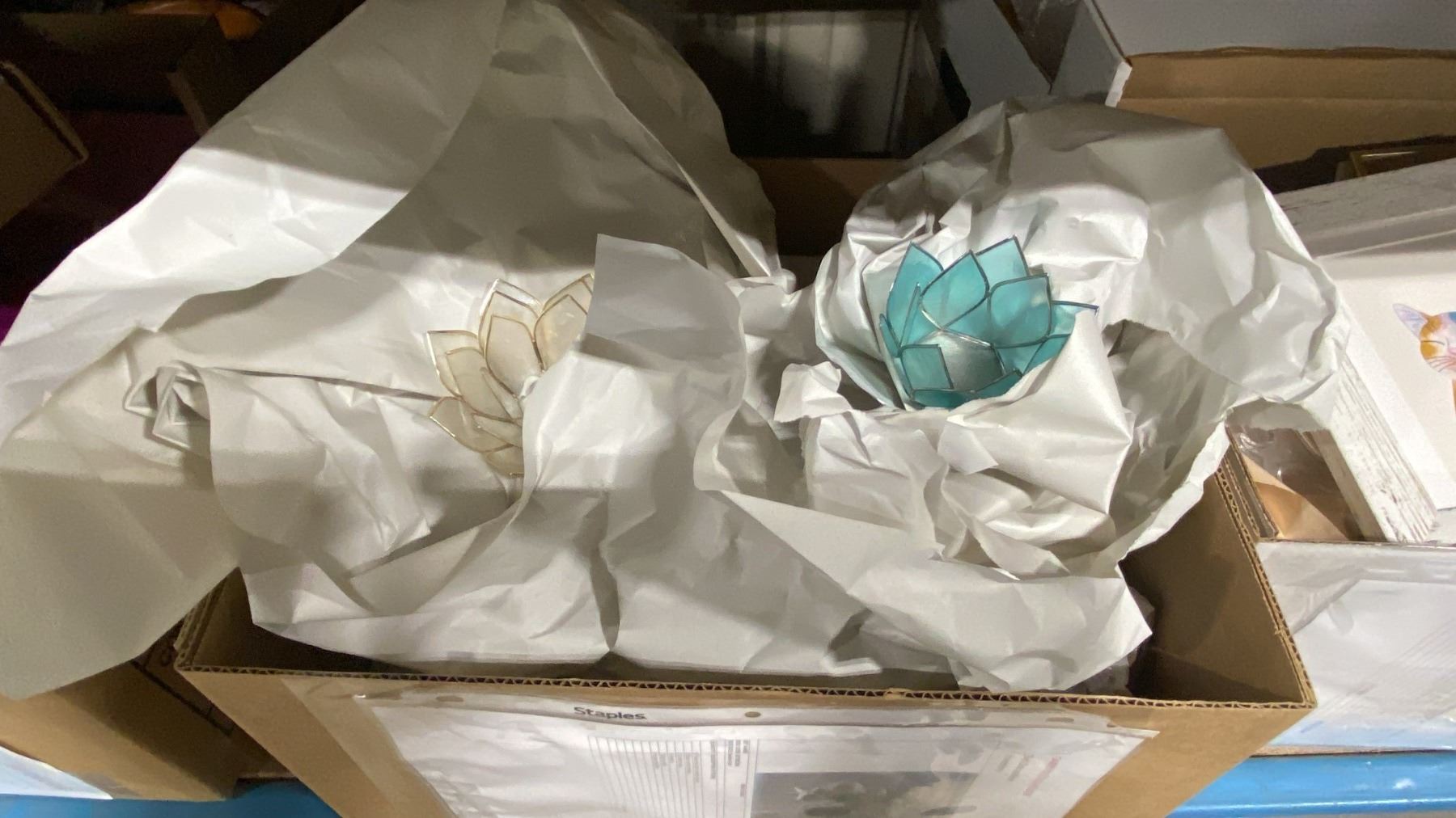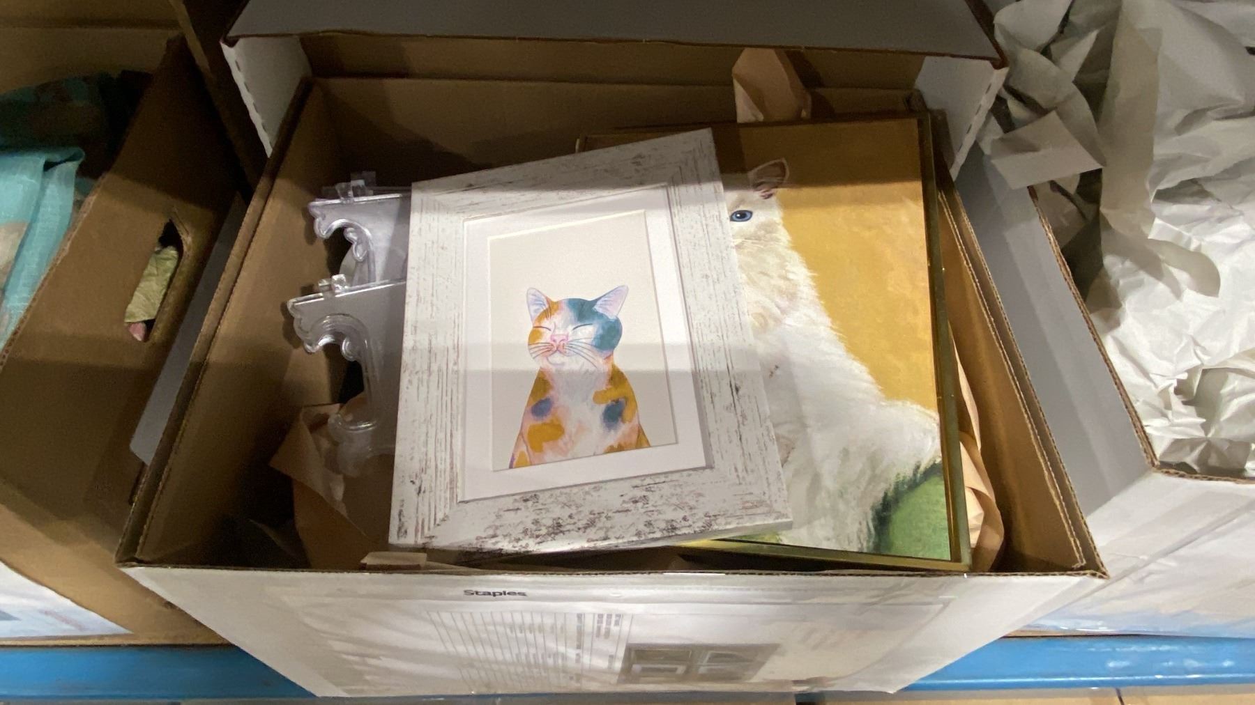 SHELF OF ASSORTED PICTURES, LAMPS & DECOR ITEMS