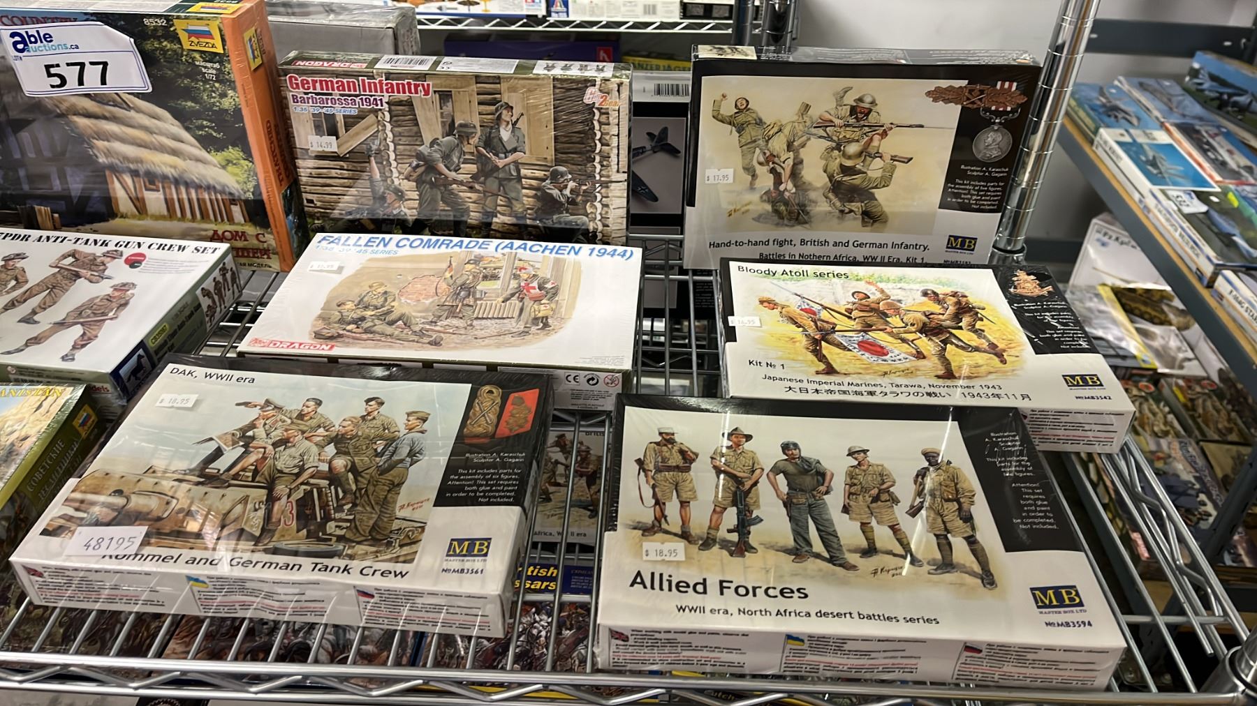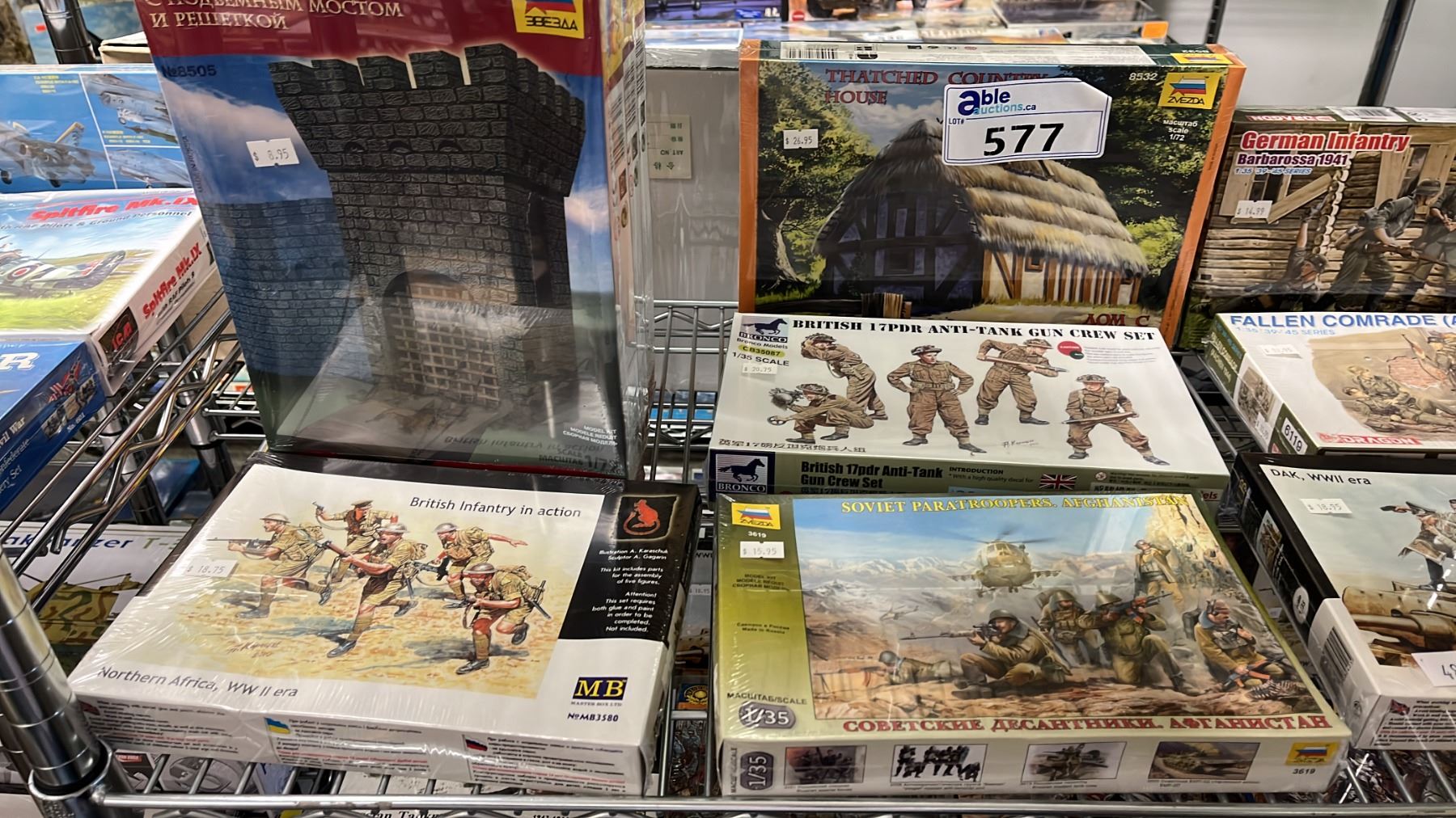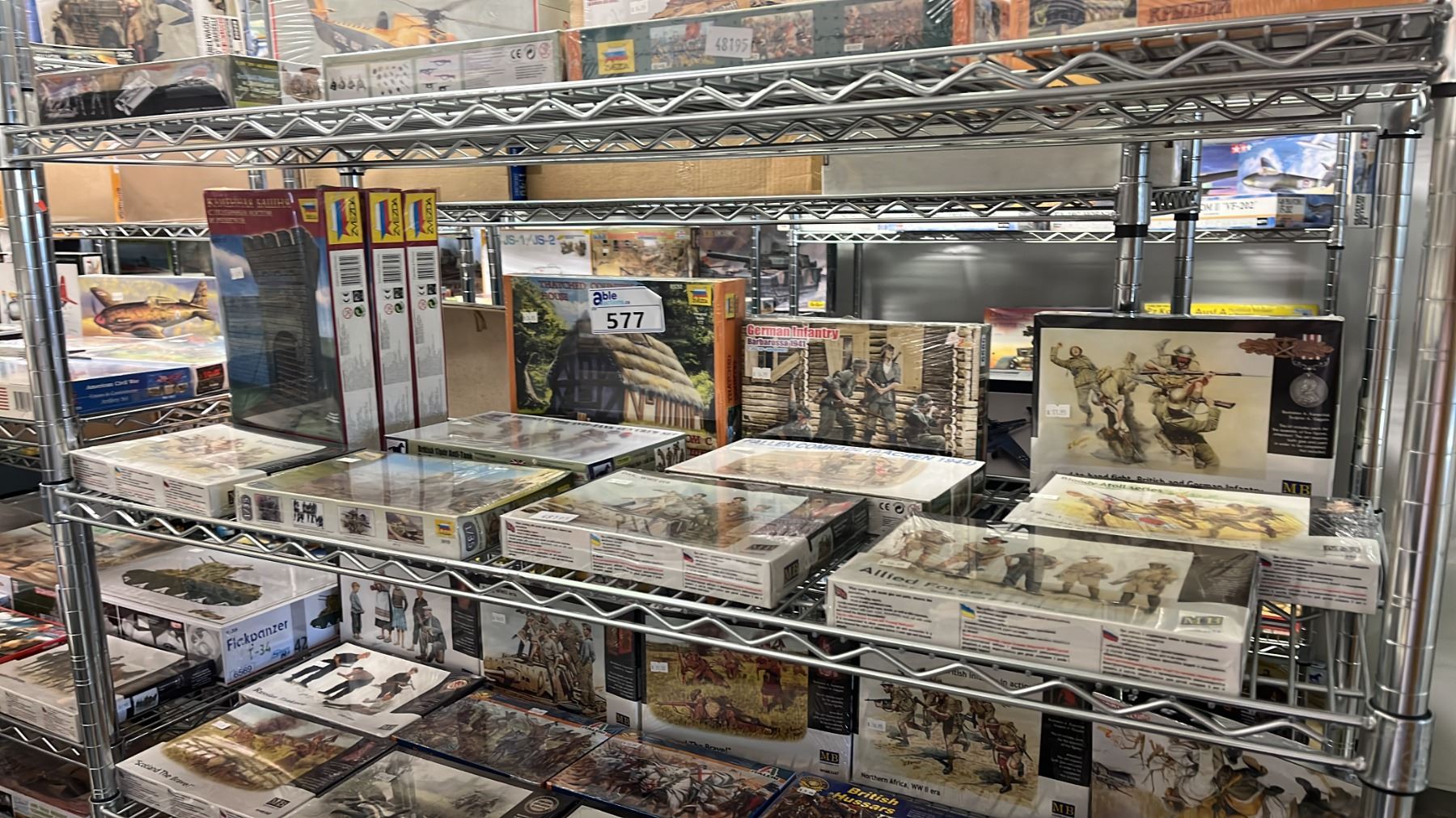 SHELF OF ASSORTED PLASTIC FIGURE KITS