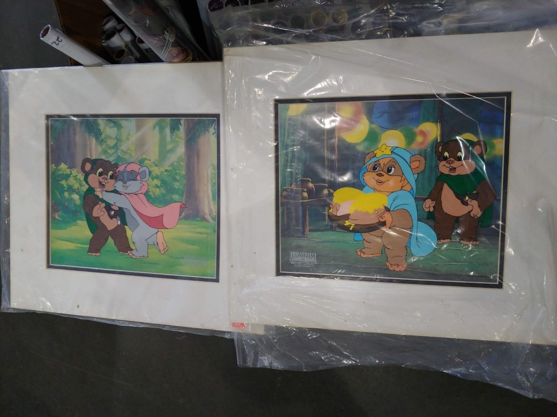 SHELF OF ASSORTED POSTER COLLECTIONS AND MORE INCLUDING PAIR OF STAR WARS EWOK SERICELS