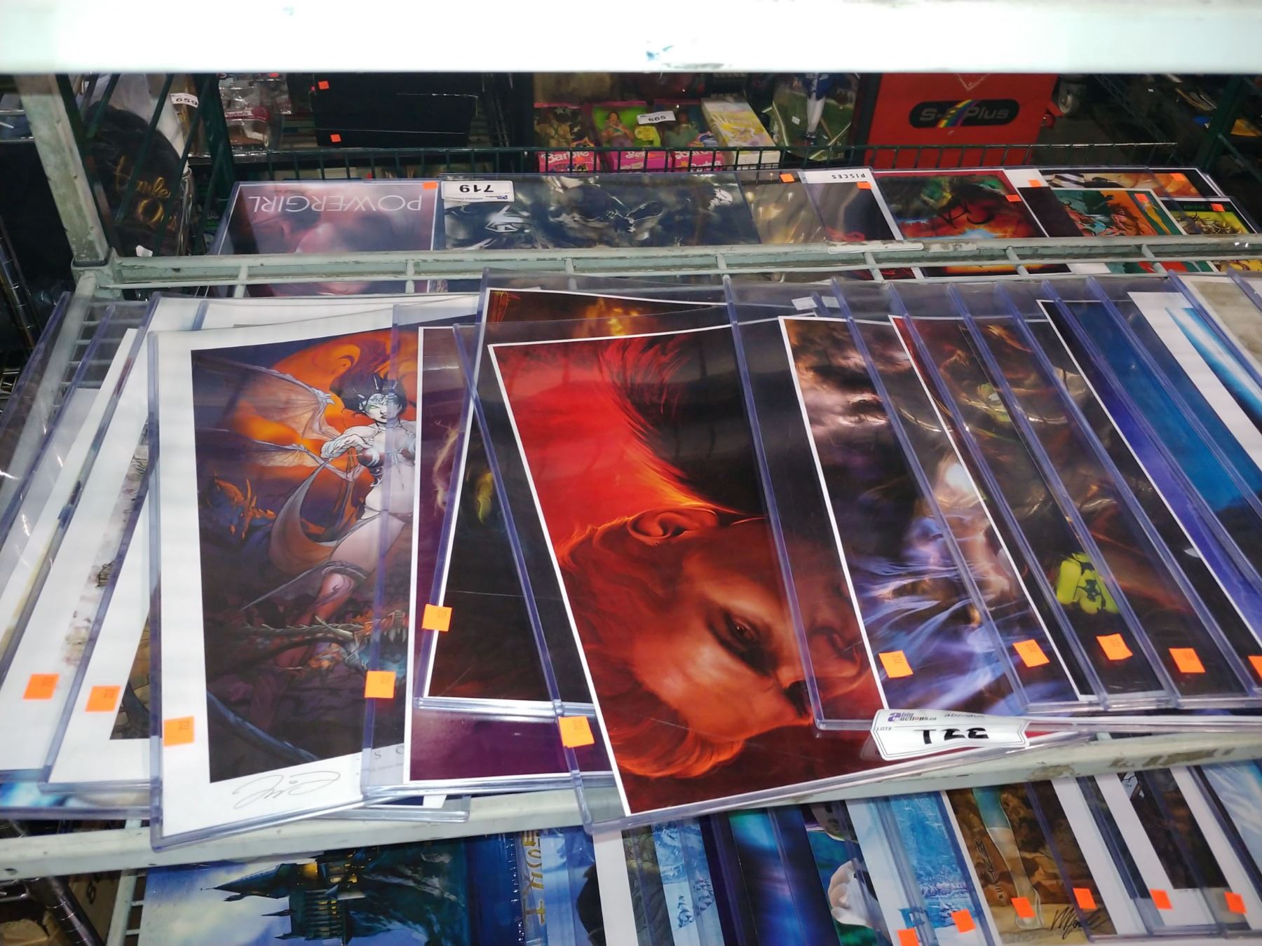 SHELF OF ASSORTED PRINTS (MOVIE, COMIC, ECT.) SOME SIGNED & NUMBERED