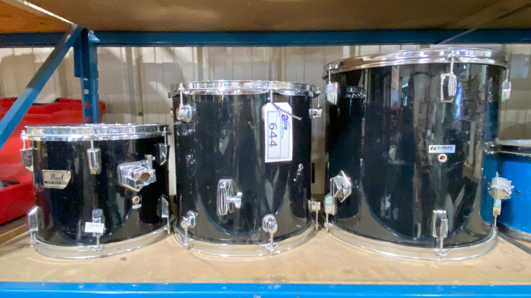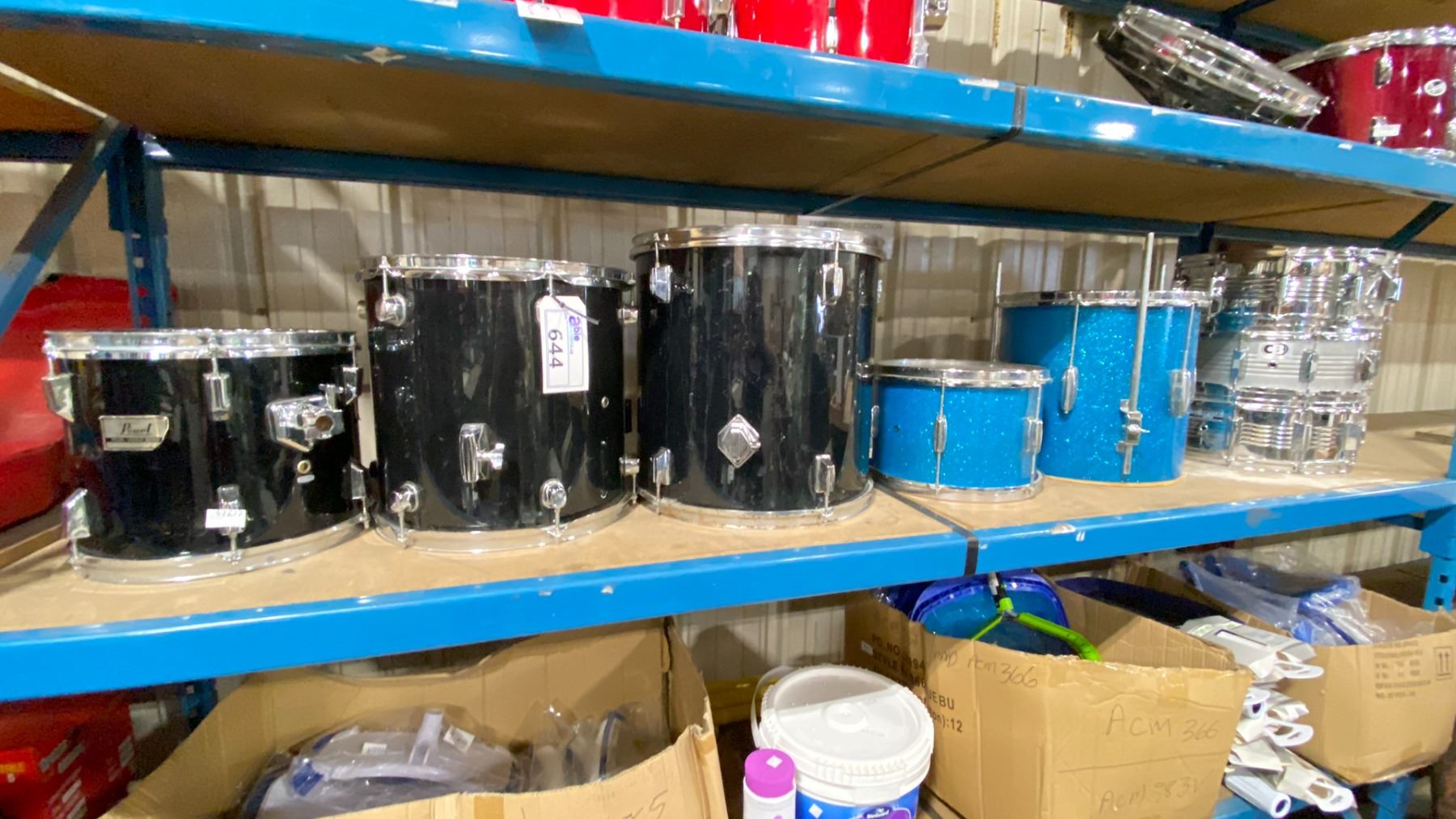 SHELF OF ASSORTED PROFESSIONAL DRUMS 8PCS