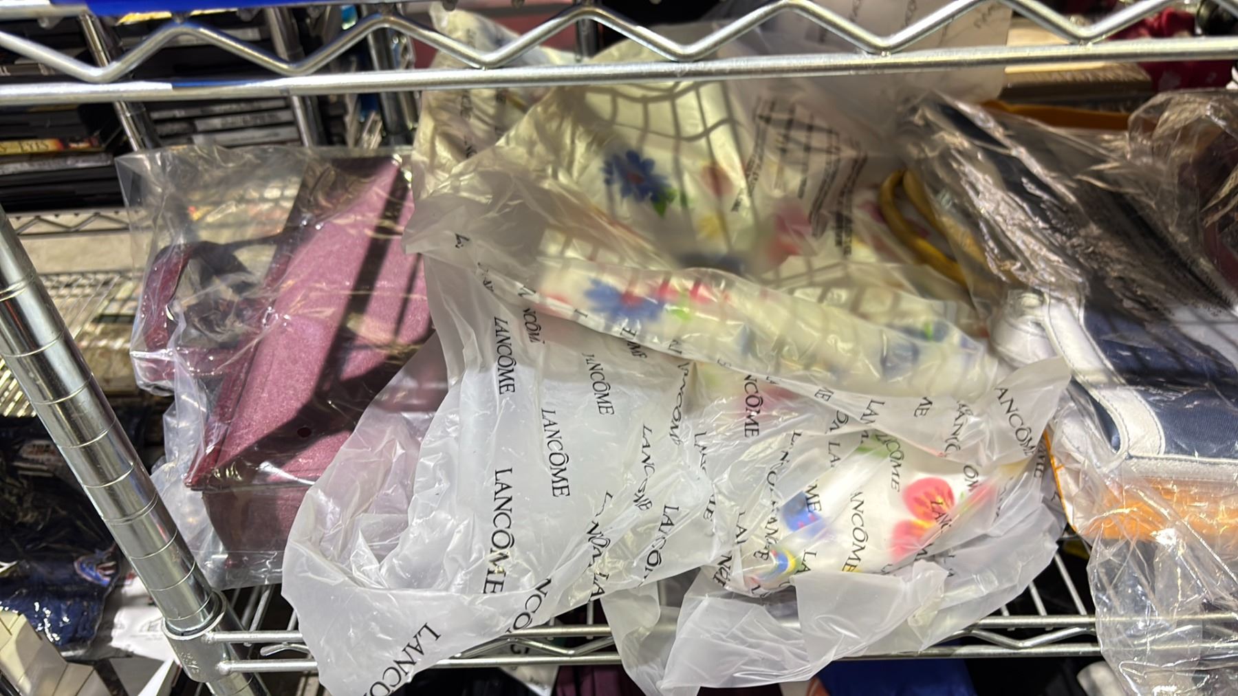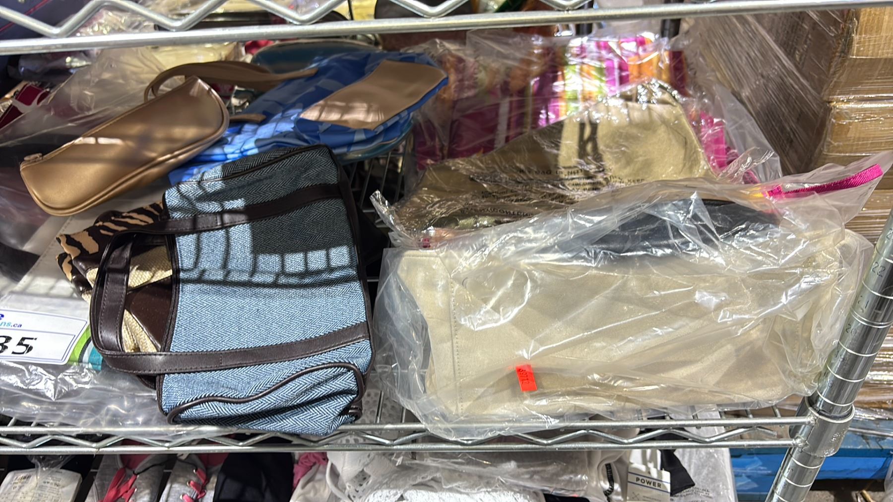 SHELF OF ASSORTED PURSES & COSMETIC BAGS