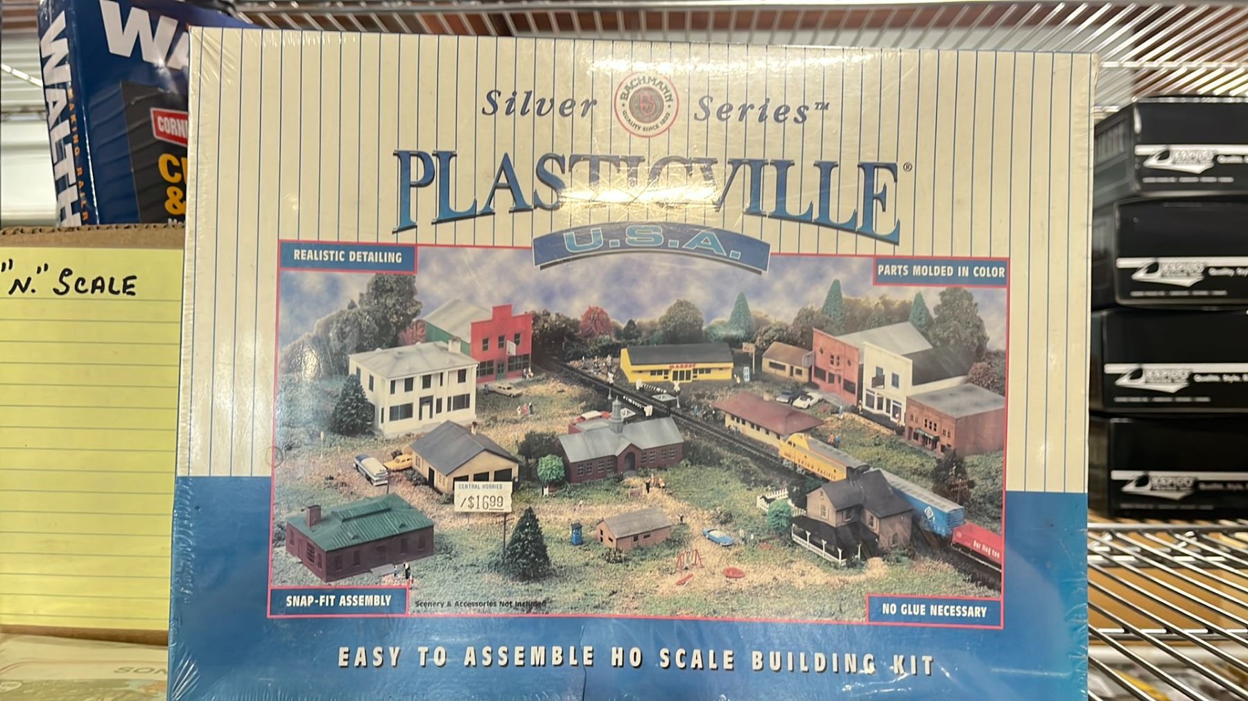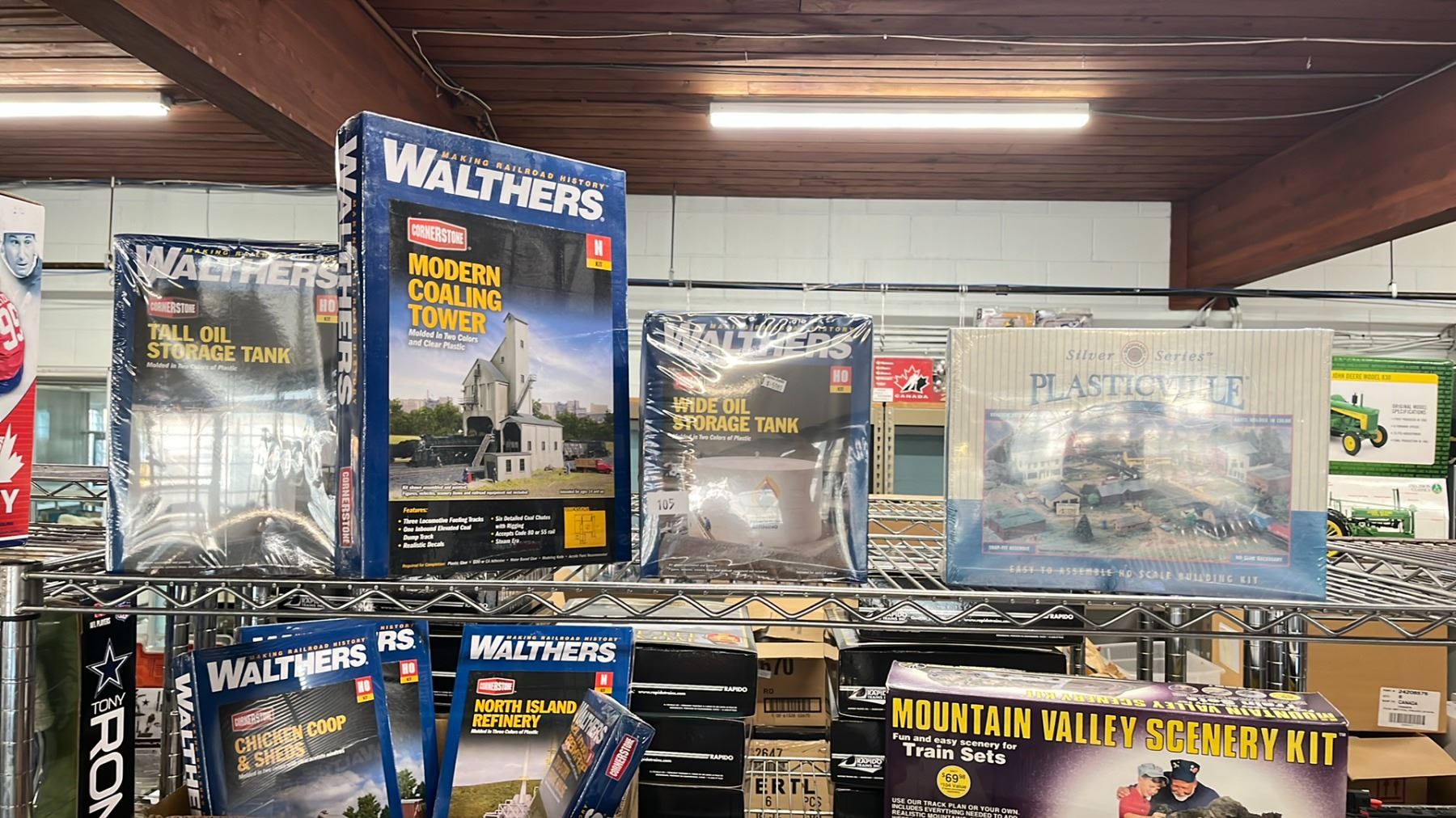 SHELF OF ASSORTED SCALE MODEL TRAIN DECOR KITS