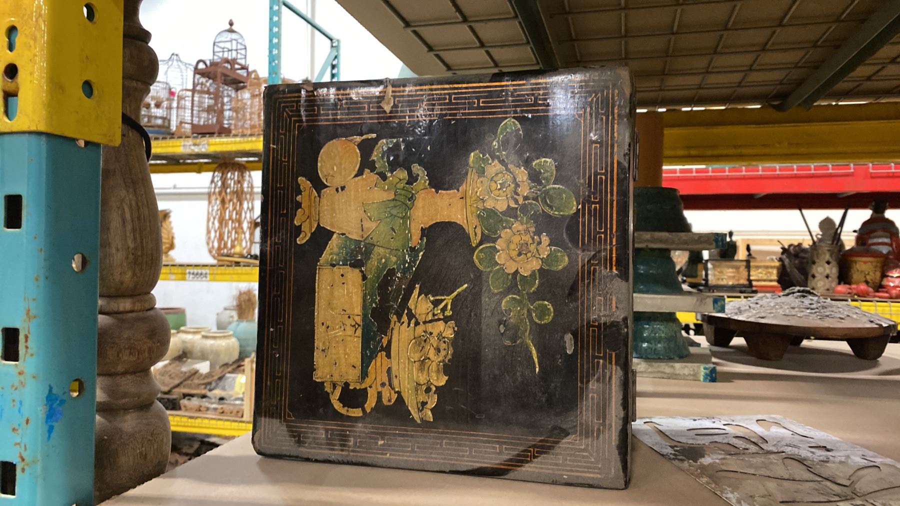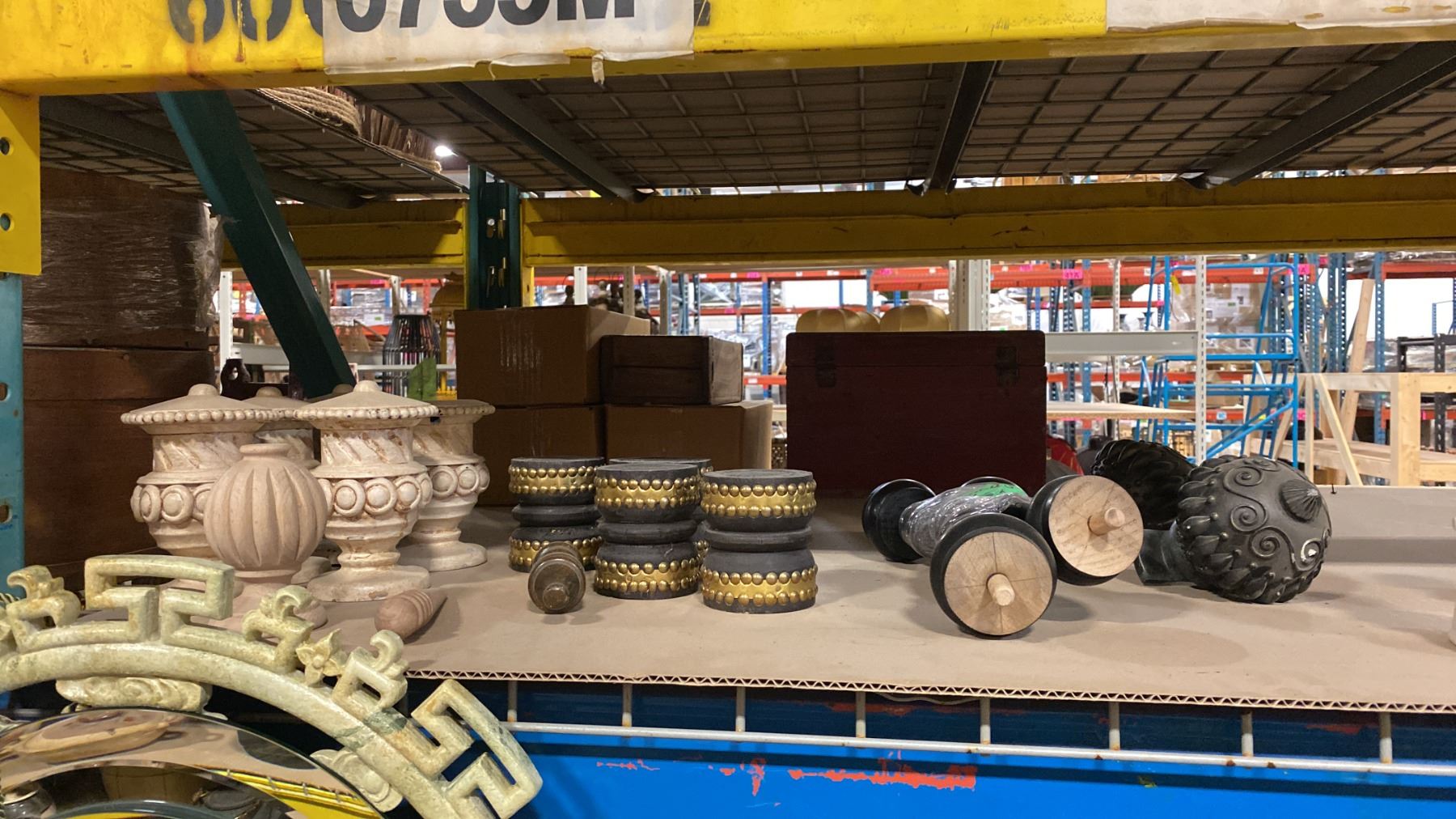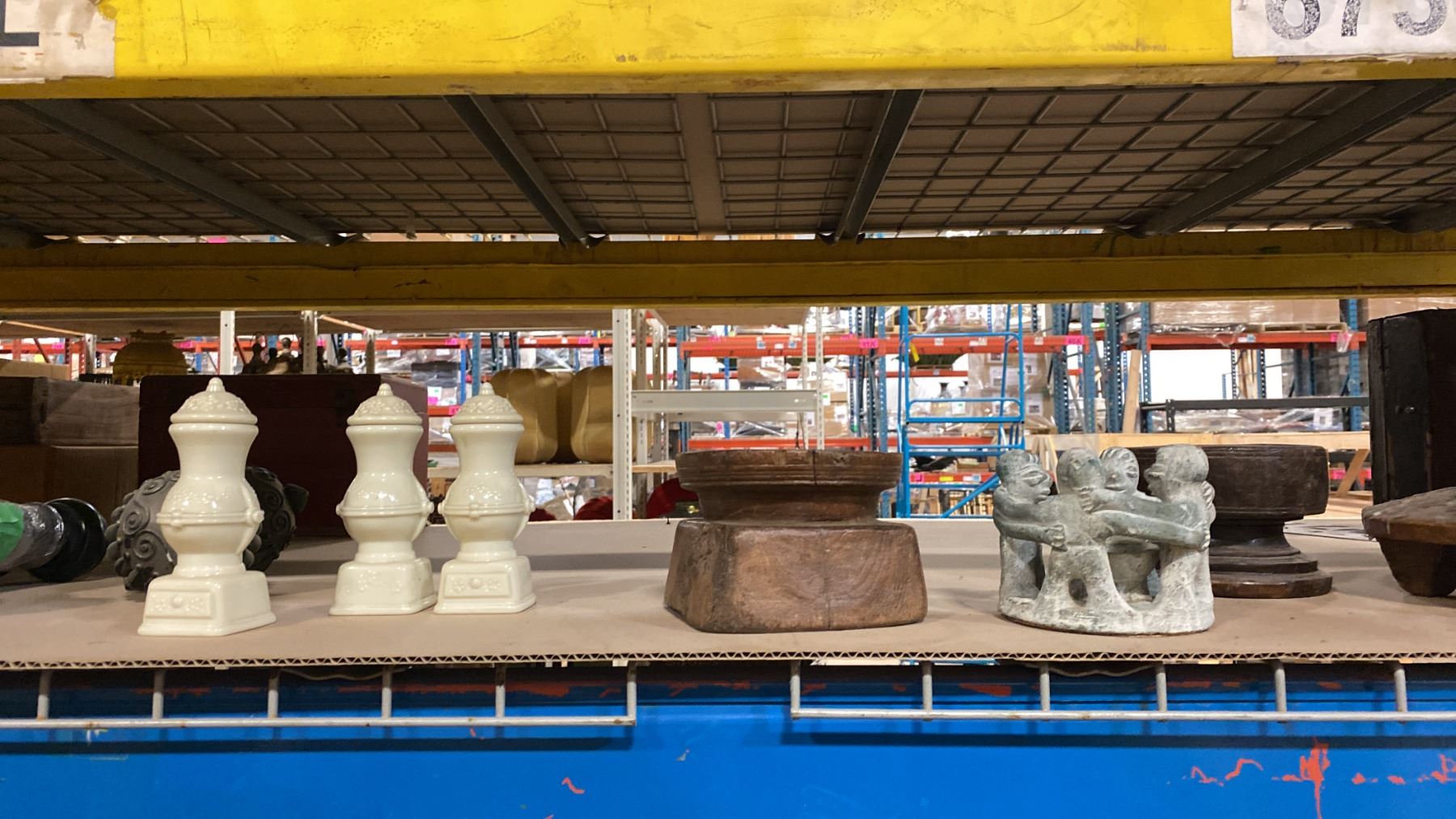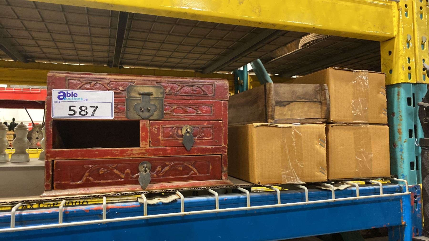 SHELF OF ASSORTED SET DEC ITEMS INCLUDING CANDLE STANDS, DECORATIVE ITEMS, JEWELRY BOX & MORE