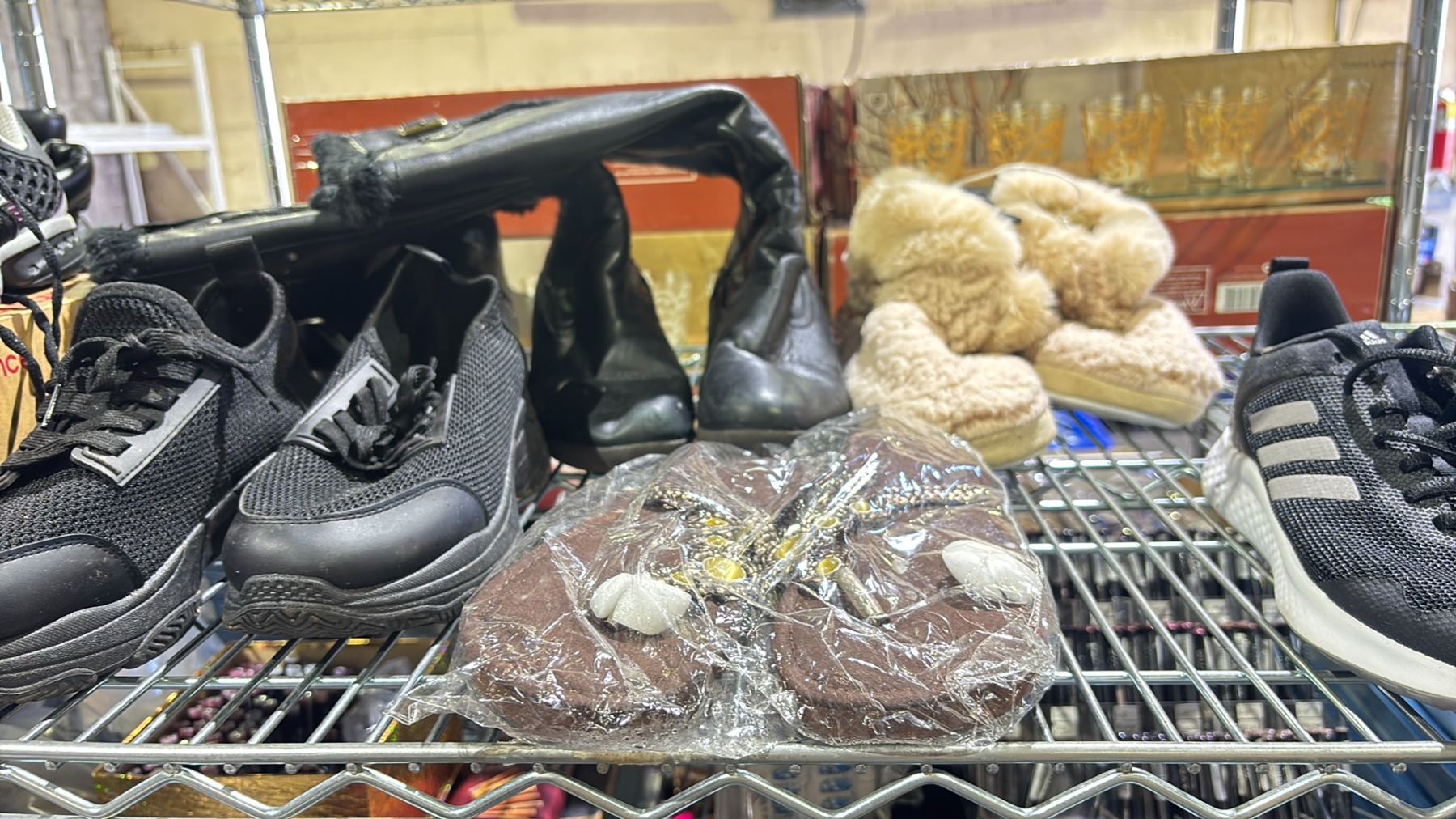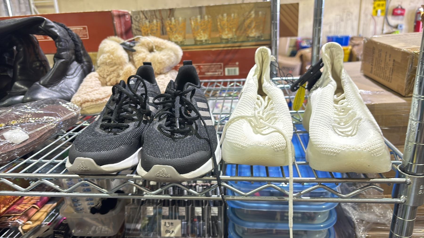 SHELF OF ASSORTED SIZE WOMENS FOOTWEAR INCLUDING ADIDAS, NEW BALANCE, SKETCHERS & MORE