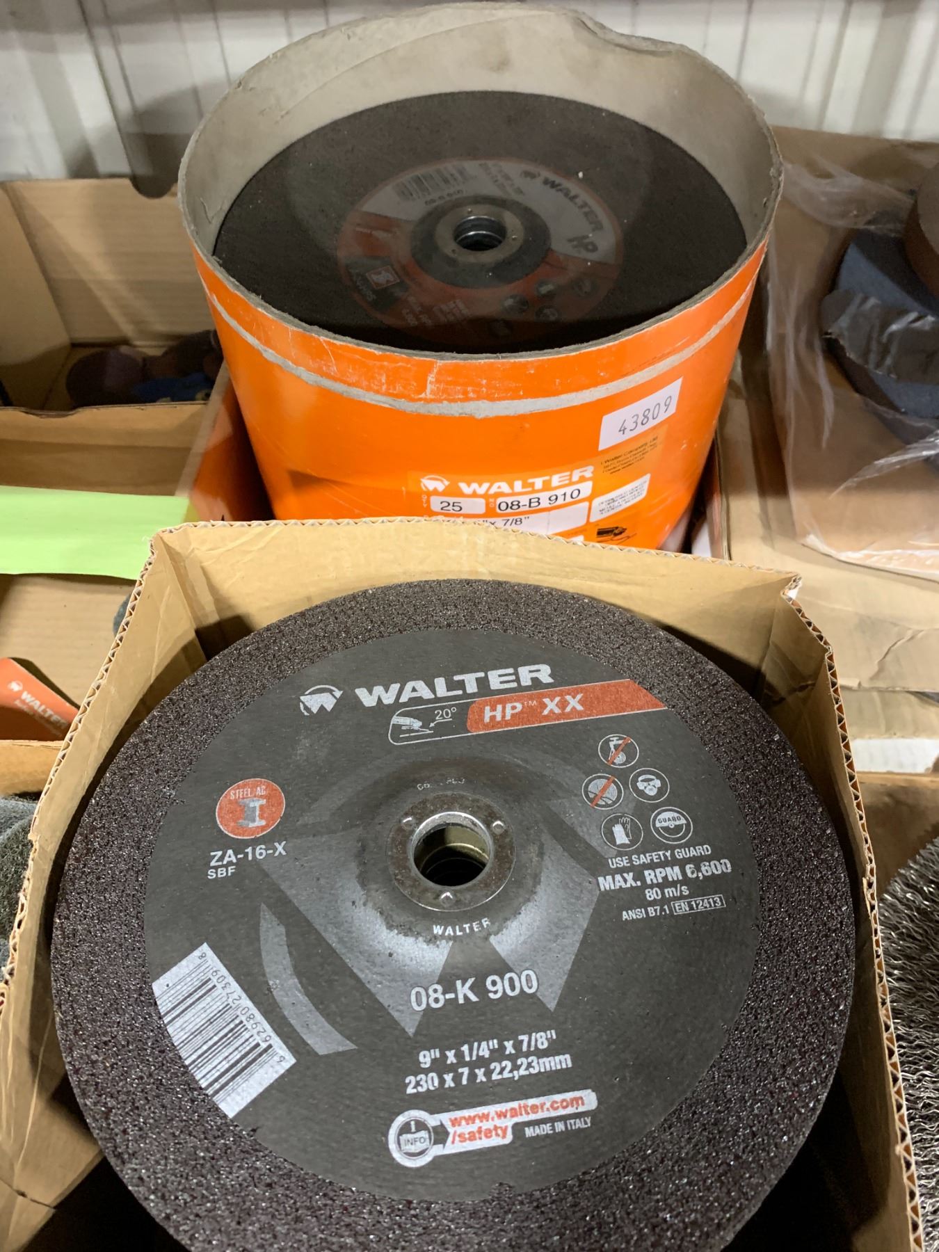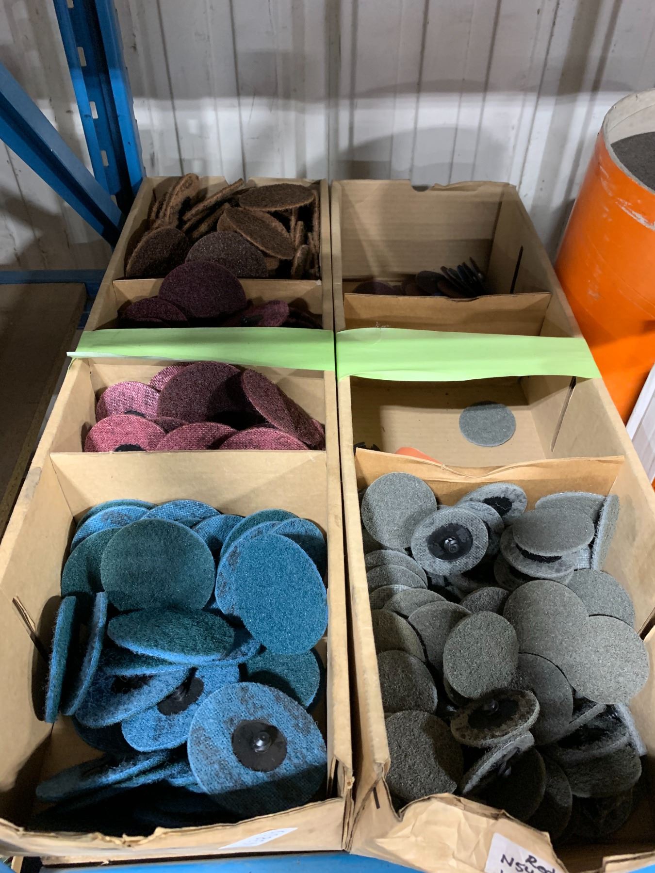 SHELF OF ASSORTED SIZED GRINDER DISKS FOR MULTIPLE USES