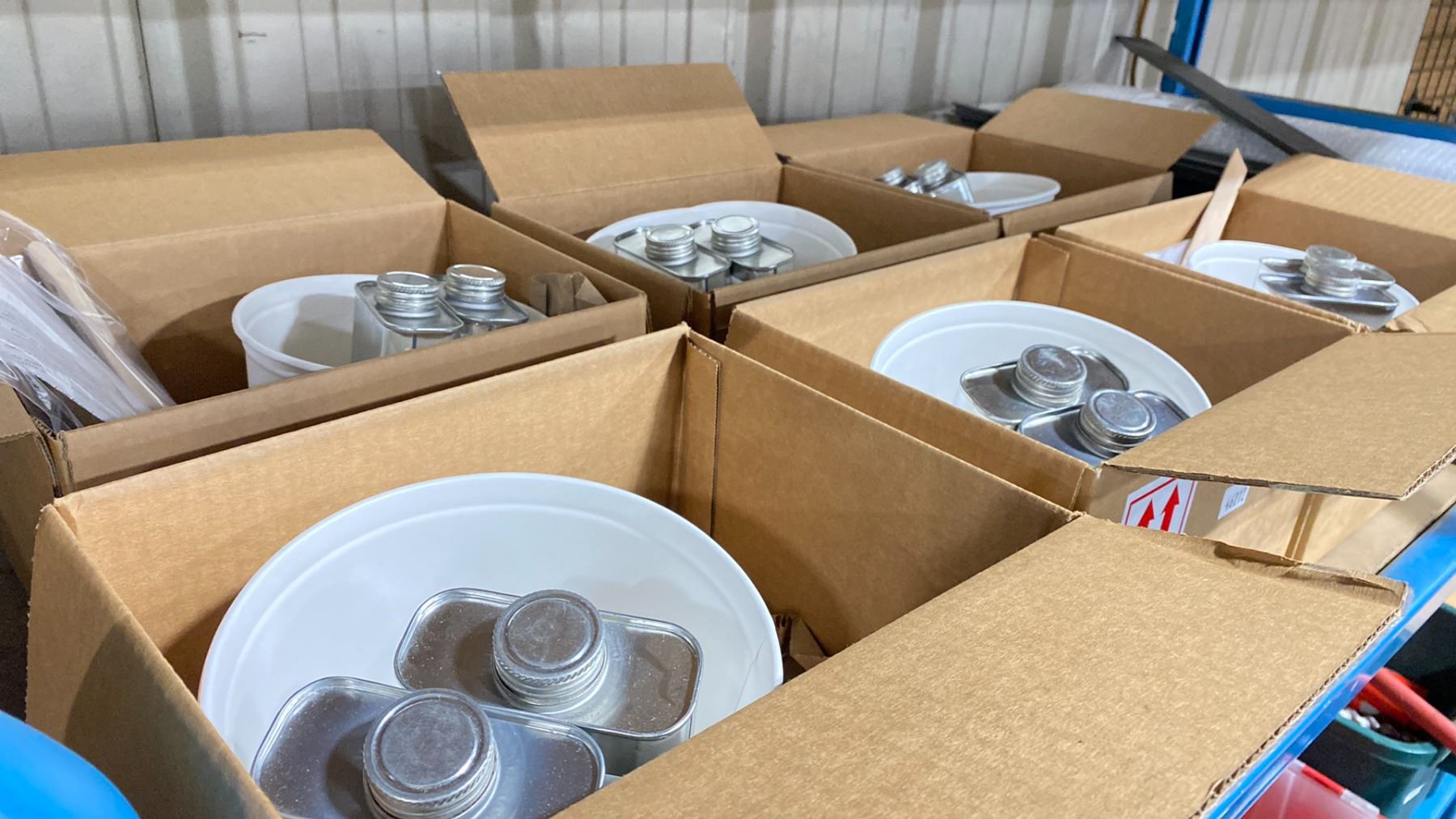 SHELF OF ASSORTED SPA PARTS, EPOXY KITS, & REPAIR ITEMS *MUST TAKE ALL ON SHELF*