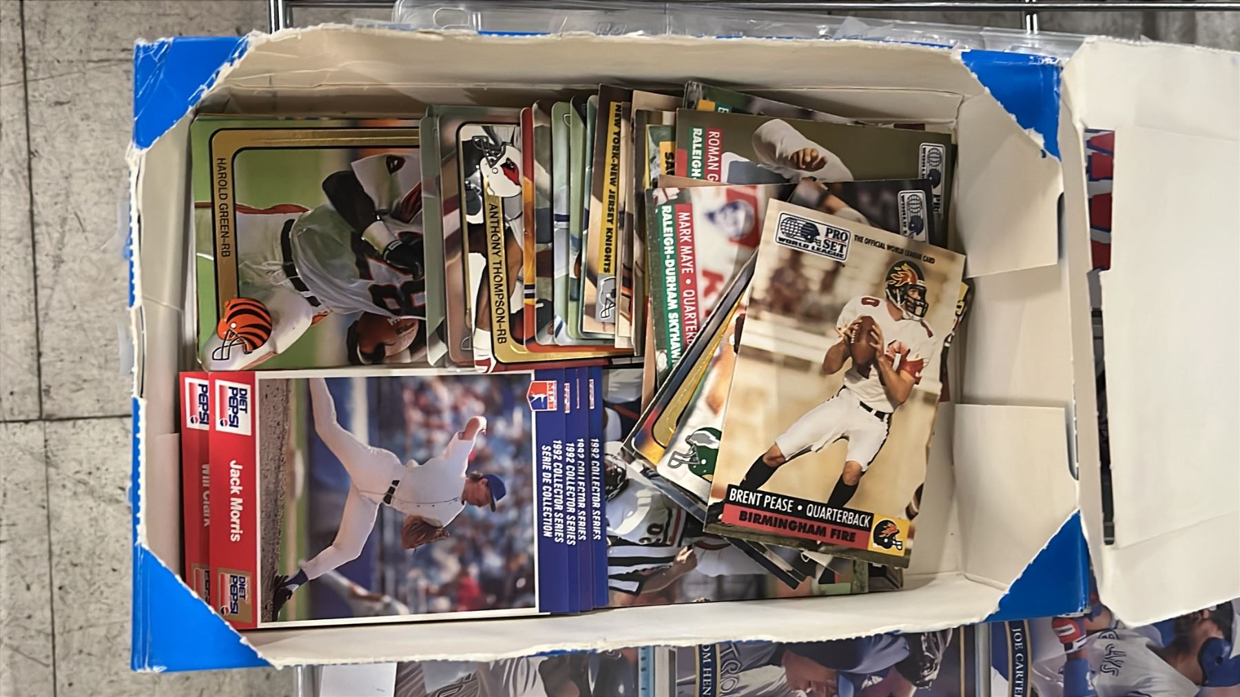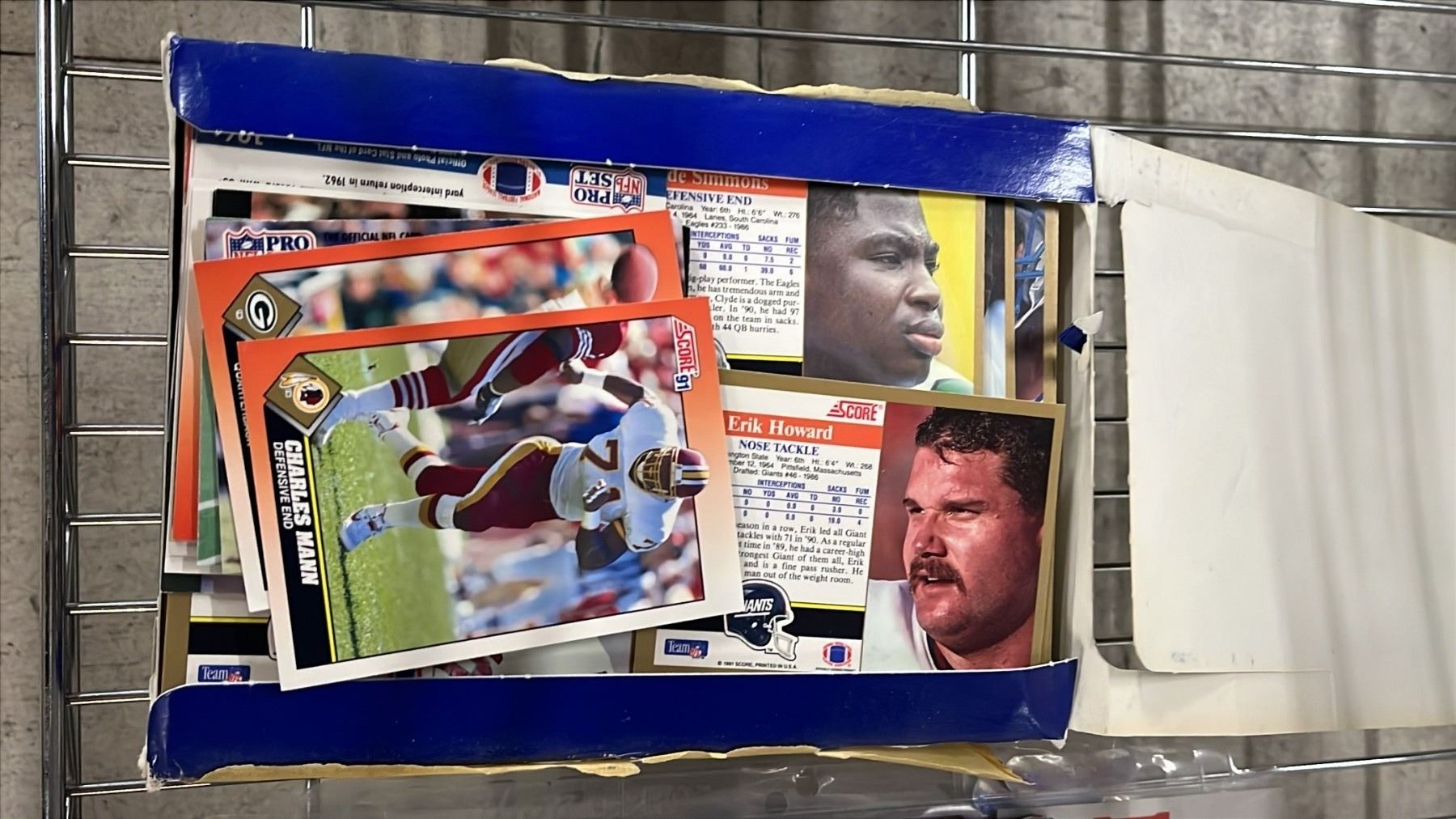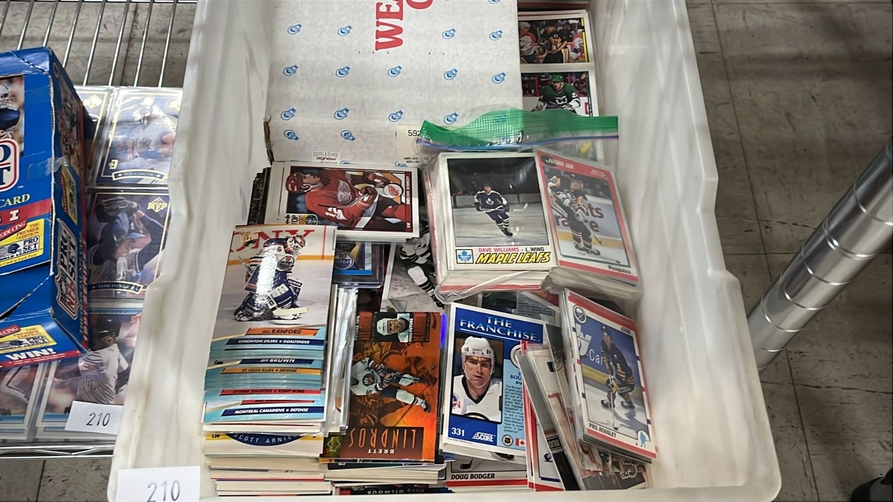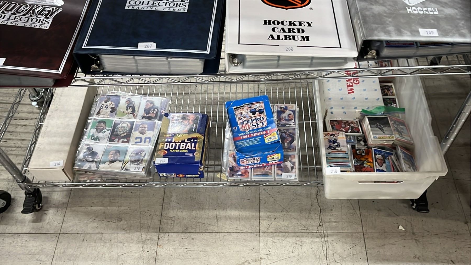 SHELF OF ASSORTED SPORTS CARDS INCLUDING; HOCKEY, FOOTBALL, BASEBALL & MORE
