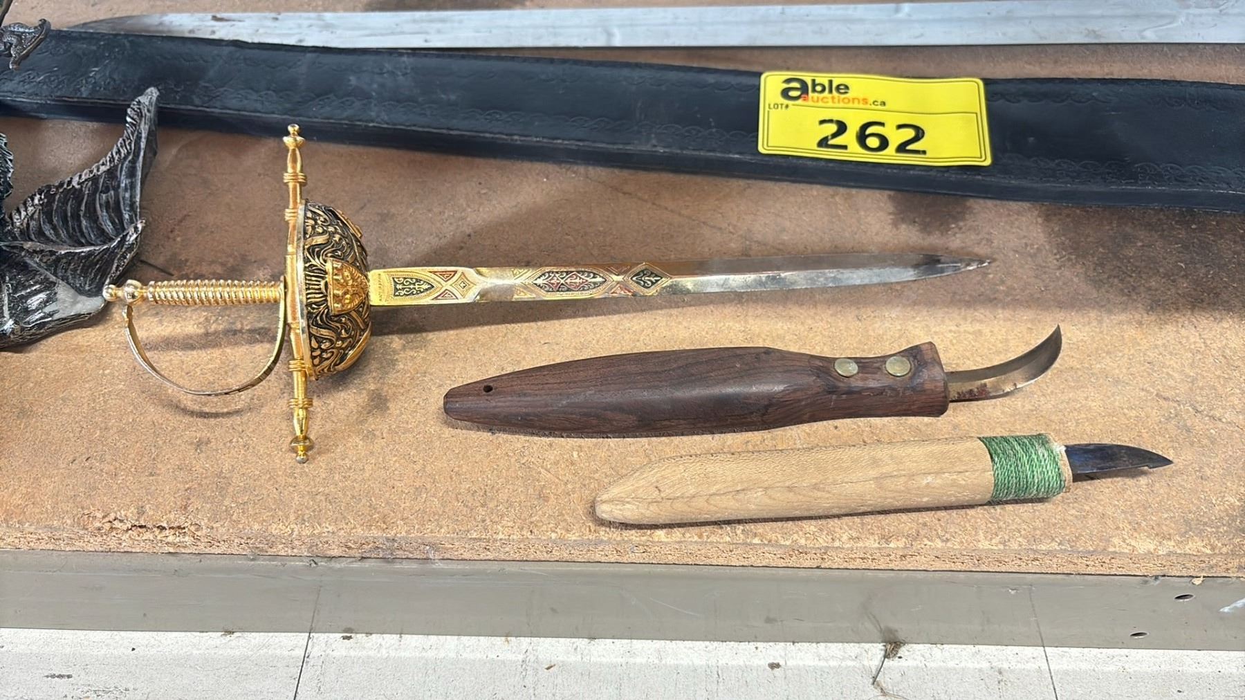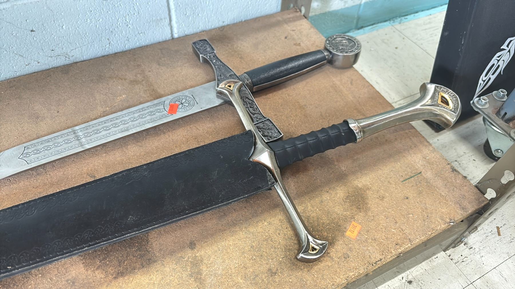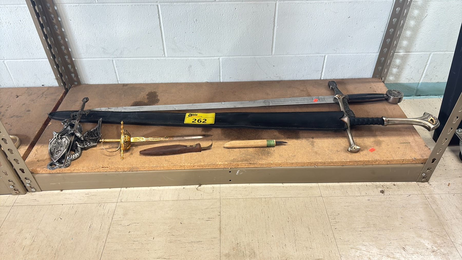 SHELF OF ASSORTED SWORDS & BLADE DECOR