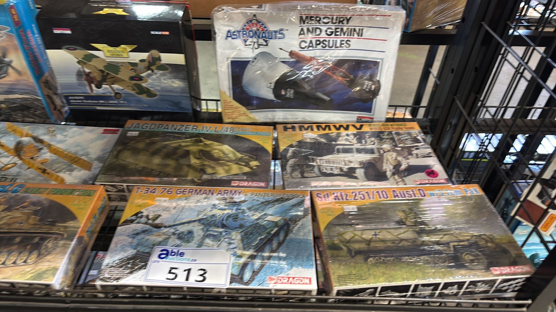 SHELF OF ASSORTED TANK & AIRCRAFT MODEL SETS