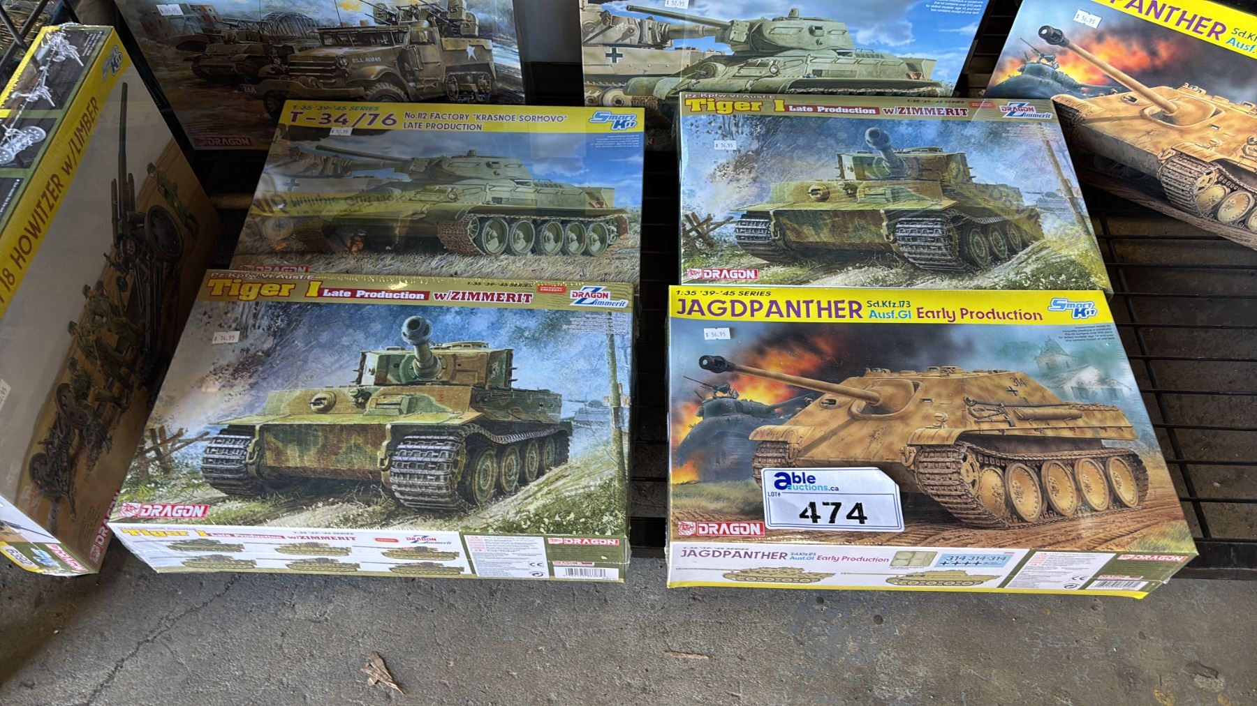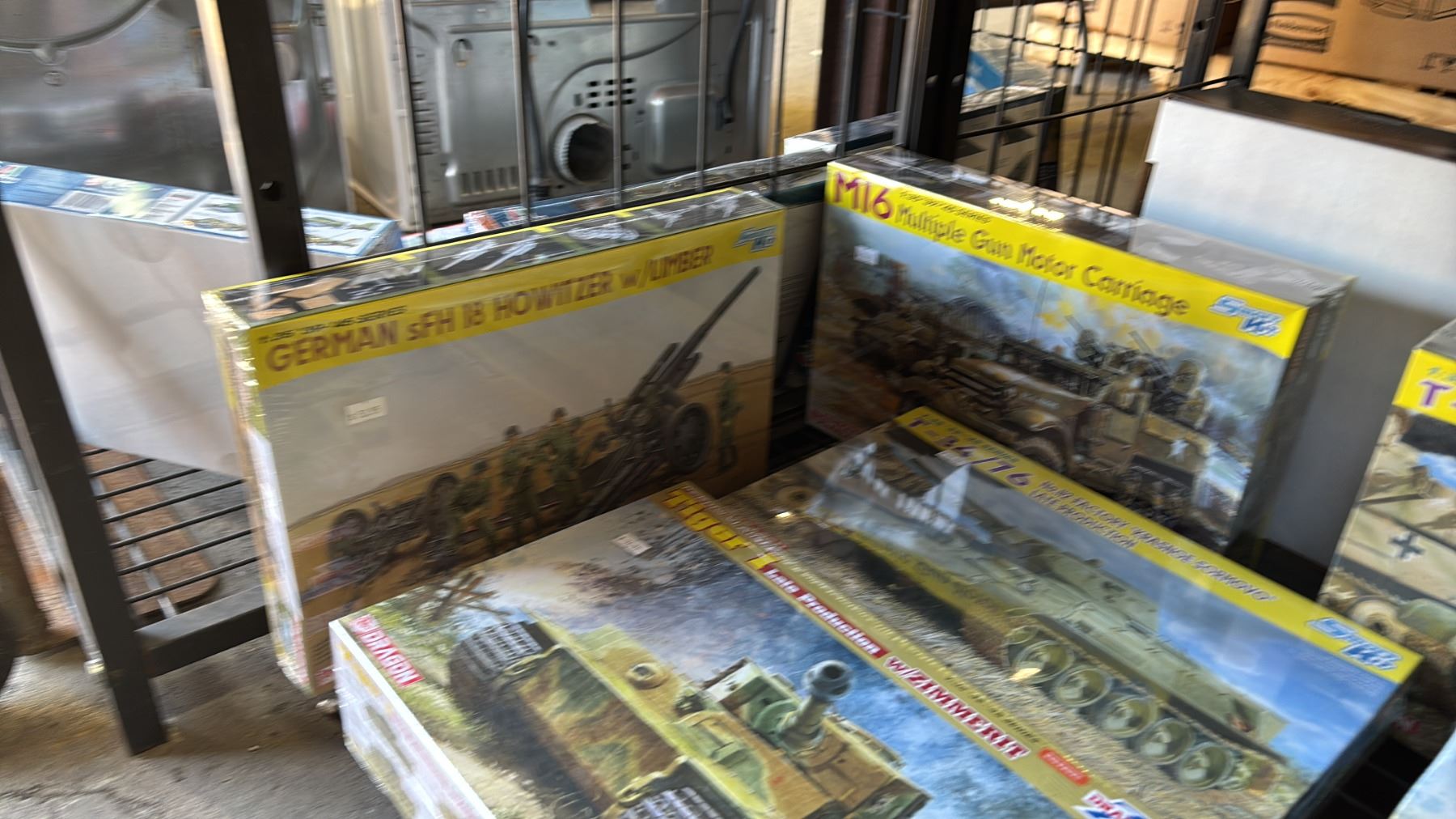 SHELF OF ASSORTED TANK MODEL KITS