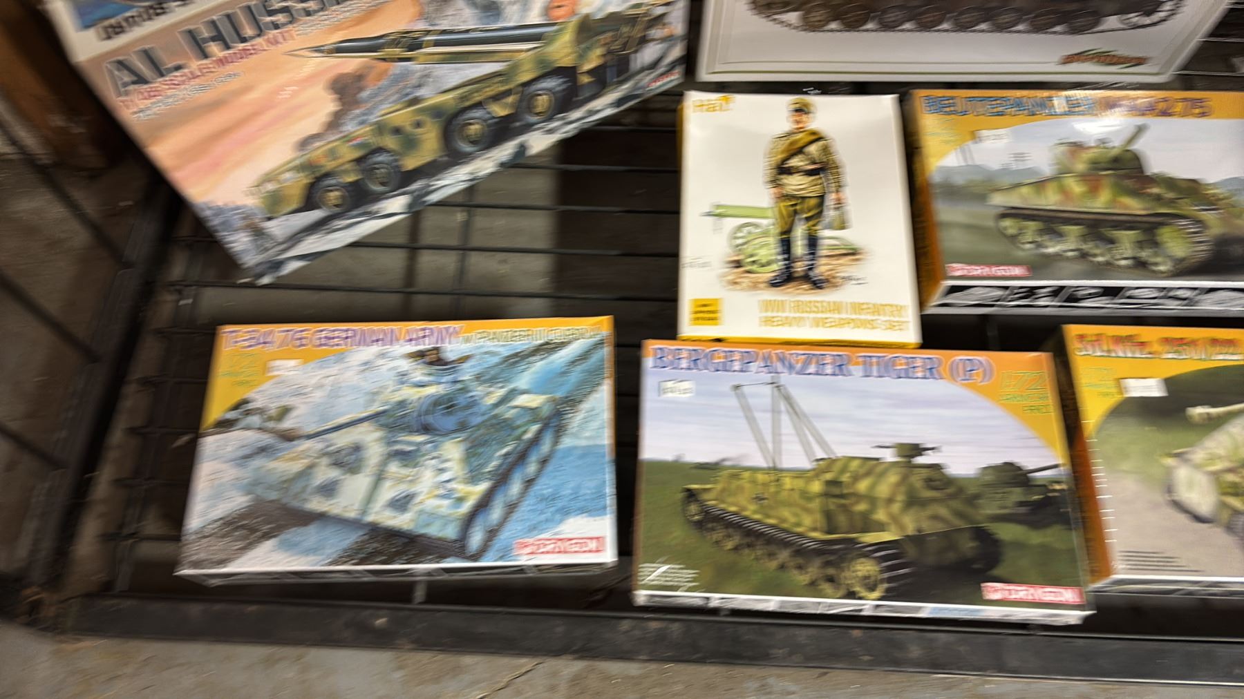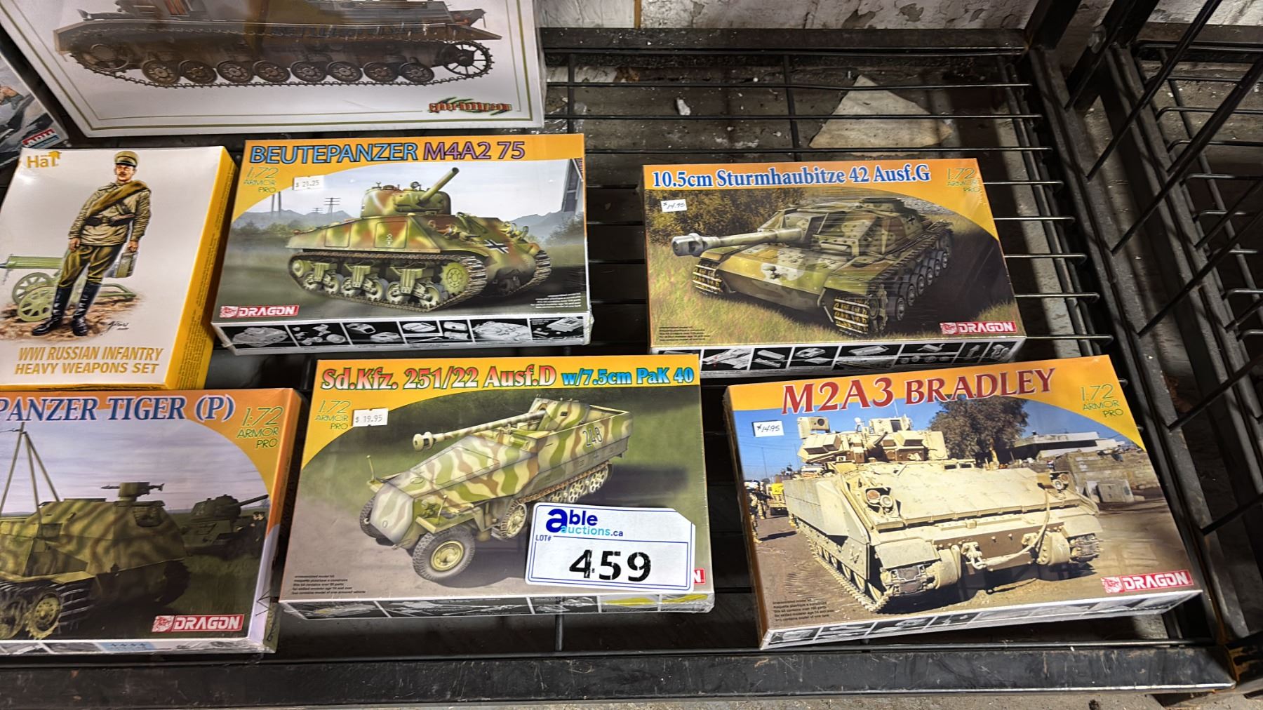 SHELF OF ASSORTED TANK MODELS & WWI RUSSIAN INFANTRY HEAVY WEAPONS SET