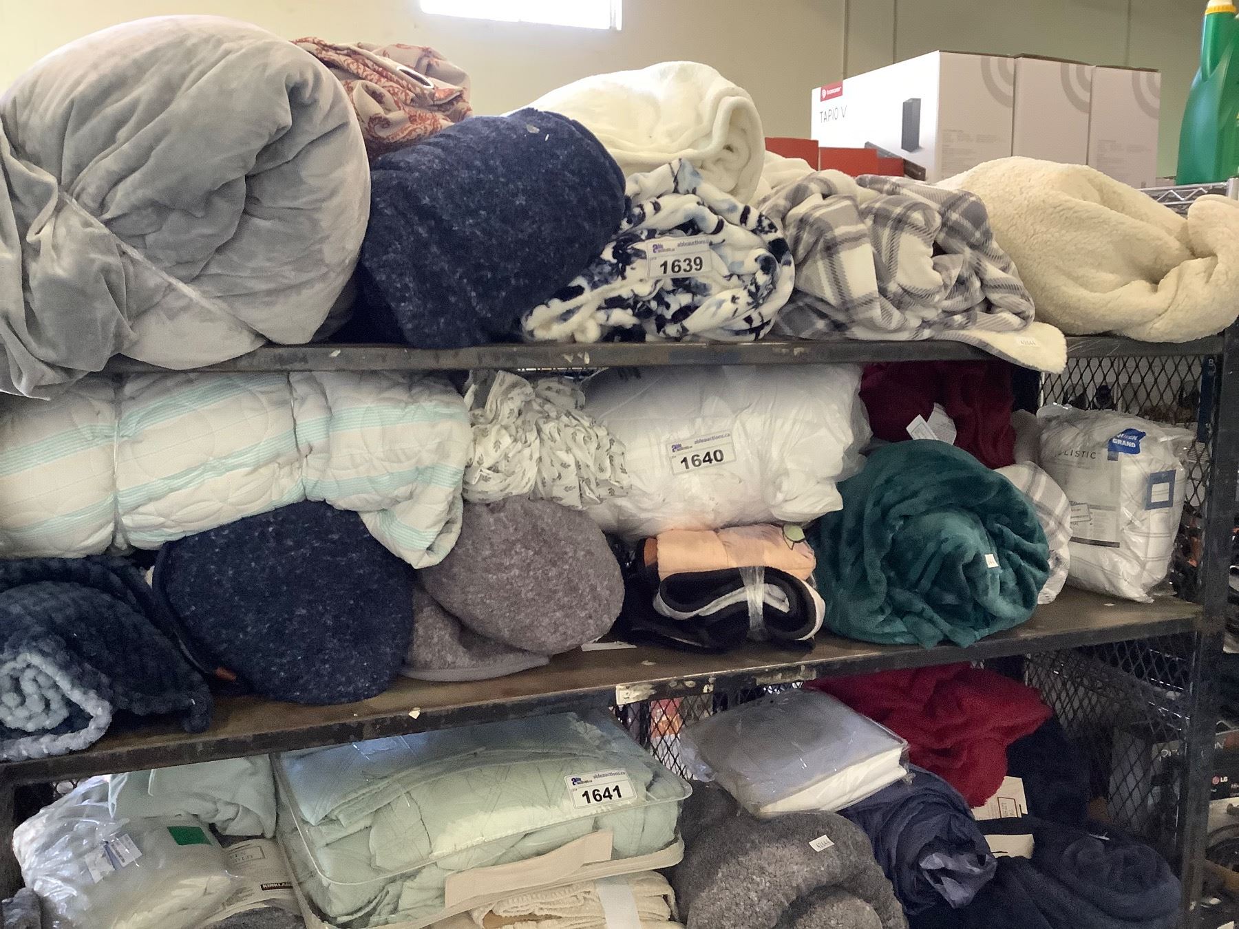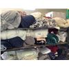 SHELF OF ASSORTED THROW BLANKETS AND BEDDING