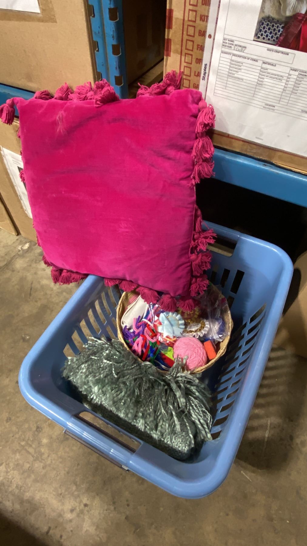 SHELF OF ASSORTED THROW CUSHIONS & BLANKETS