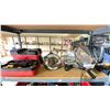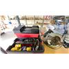 SHELF OF ASSORTED TOOLS INCLUDING; BLACK & DECKER MITER SAW, CIRCULAR SAW & TOOLBOX WITH CONTENTS