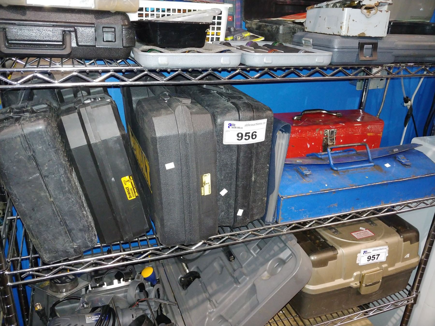 SHELF OF ASSORTED TOOLS / TOOL BOXES