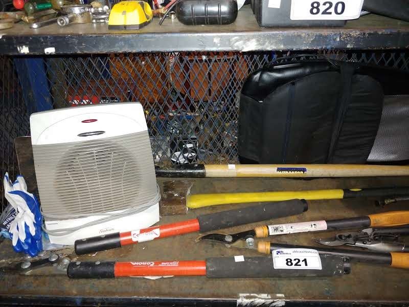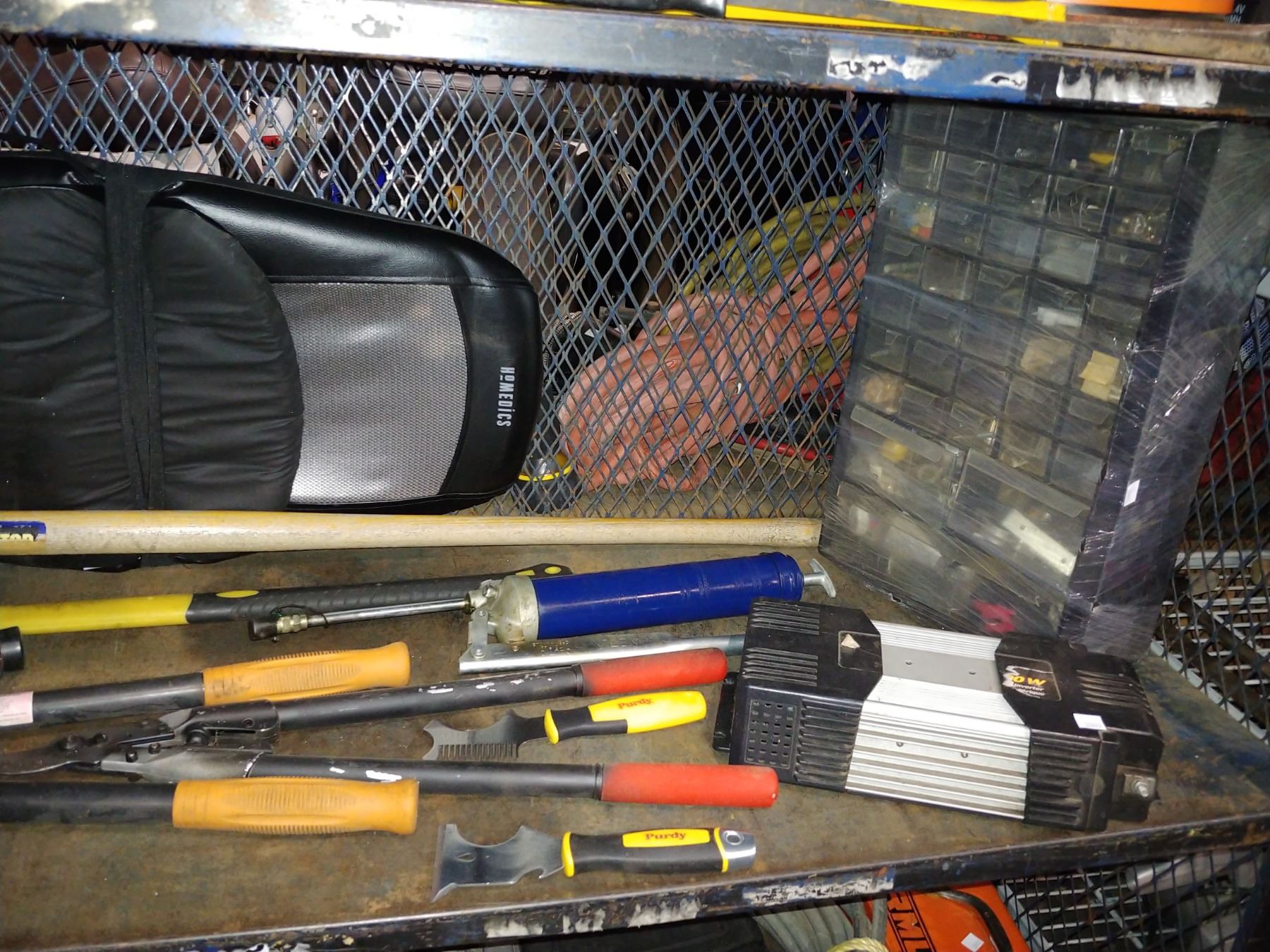 SHELF OF ASSORTED TOOLS, TOOL ORGANIZER AND MORE