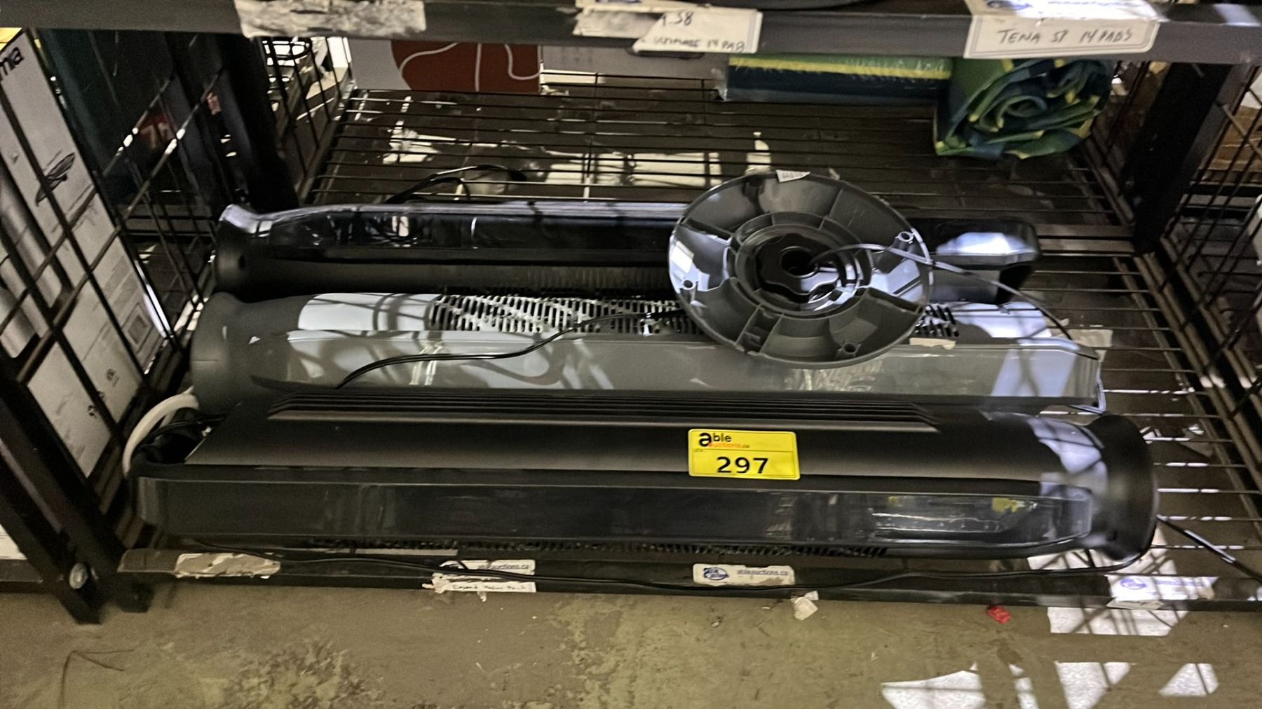 SHELF OF ASSORTED TOWER FANS (SOME MISSING BASES)