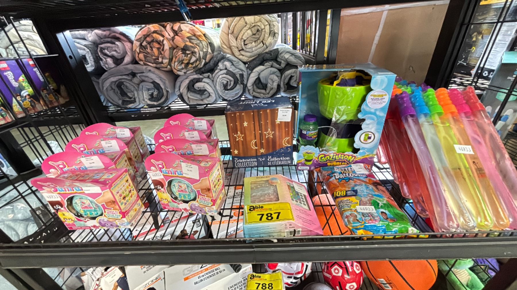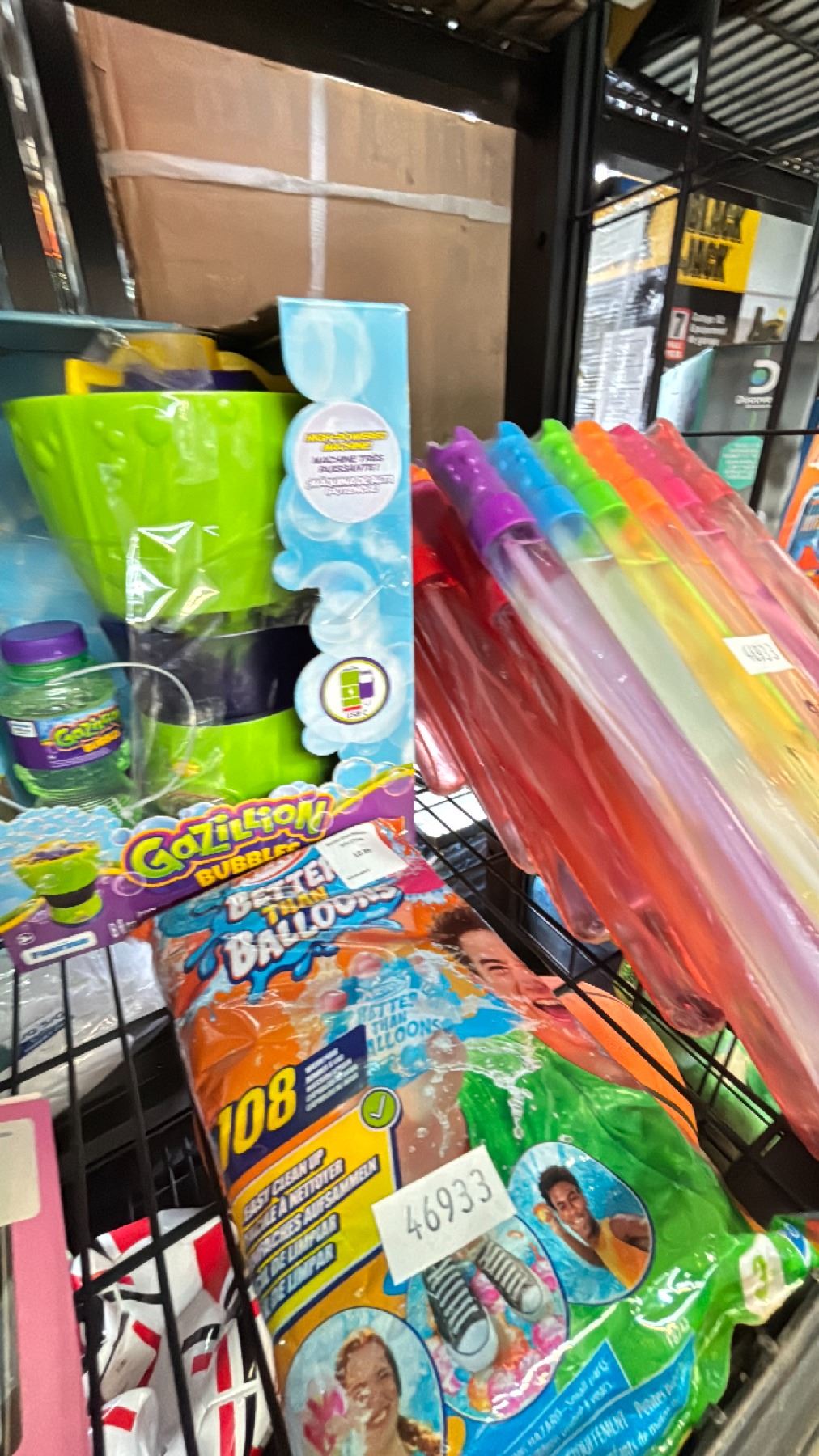 SHELF OF ASSORTED TOYS INCLUDING; BUBBLE WANDS, NERF WATER PODS, PUNIRUNES DIGITAL PETS & MORE