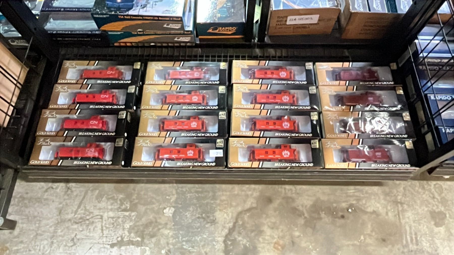 SHELF OF ASSORTED TRUELINE TRAINS GOLD SERIES CANADIAN NATIONAL HO SCALE MODEL TRAINS