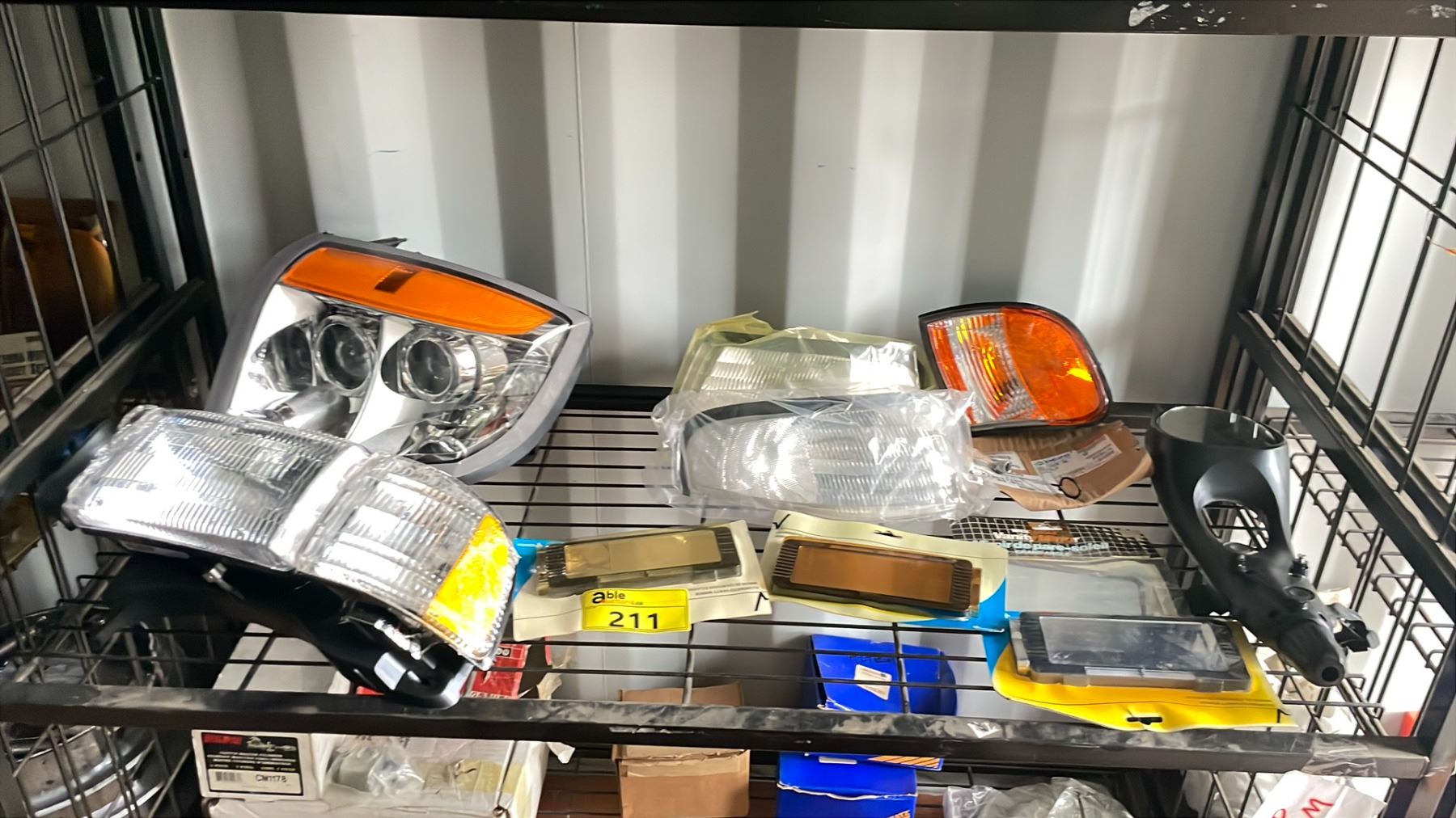 SHELF OF ASSORTED VEHICLE LIGHTS & MIRROR
