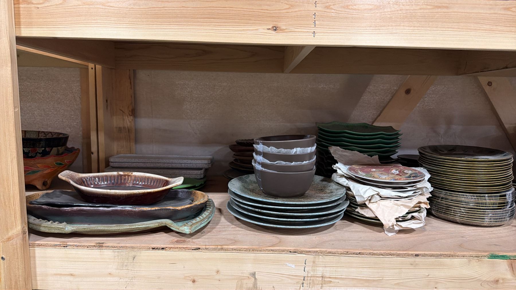 SHELF OF ASSORTED VINTAGE DINNERWARE