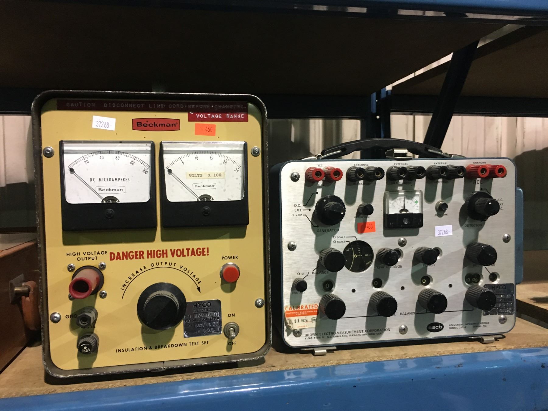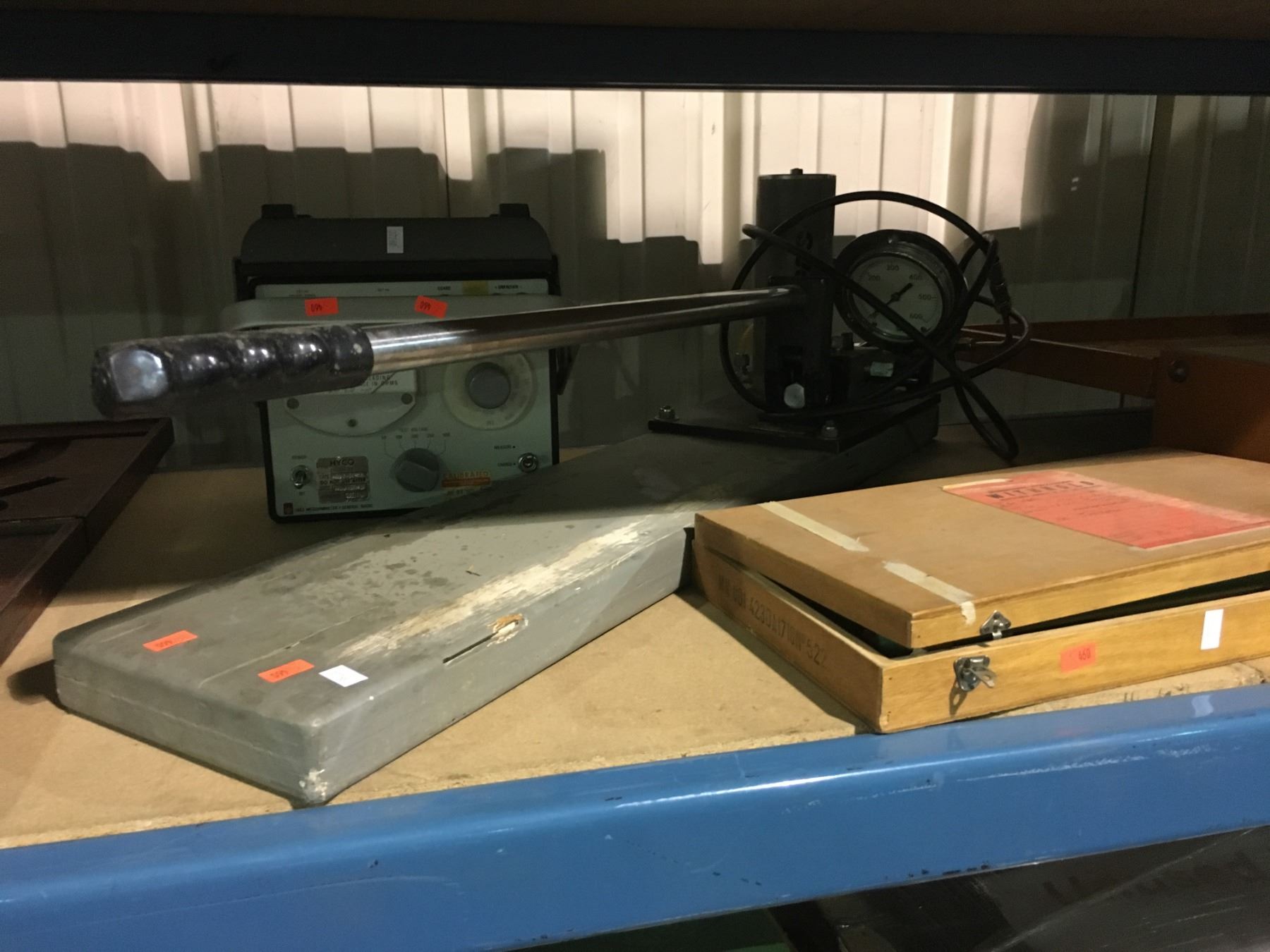 SHELF OF ASSORTED VINTAGE TESTING GEAR