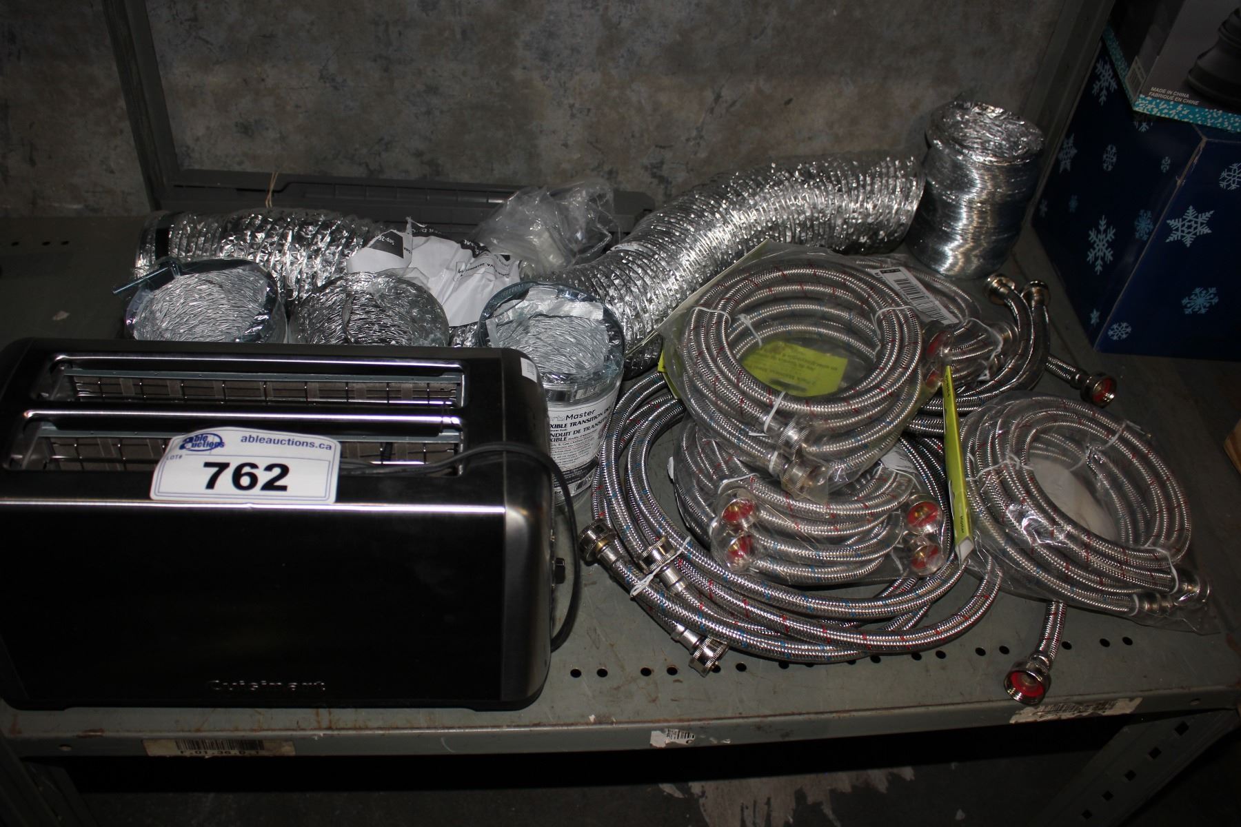 SHELF OF ASSORTED WASHER & DRYER PARTS AND CUISINART TOASTER