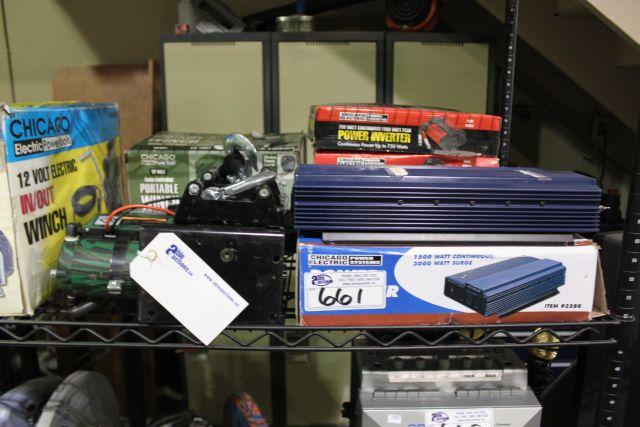 SHELF OF ASSORTED WINCHES & MISC
