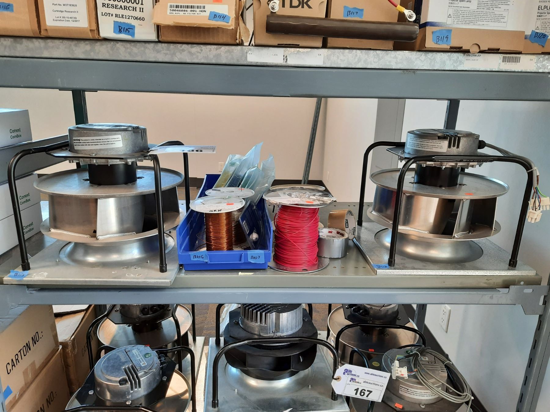 SHELF OF ASSORTED WIRE AND CIRCULATION VENT FANS