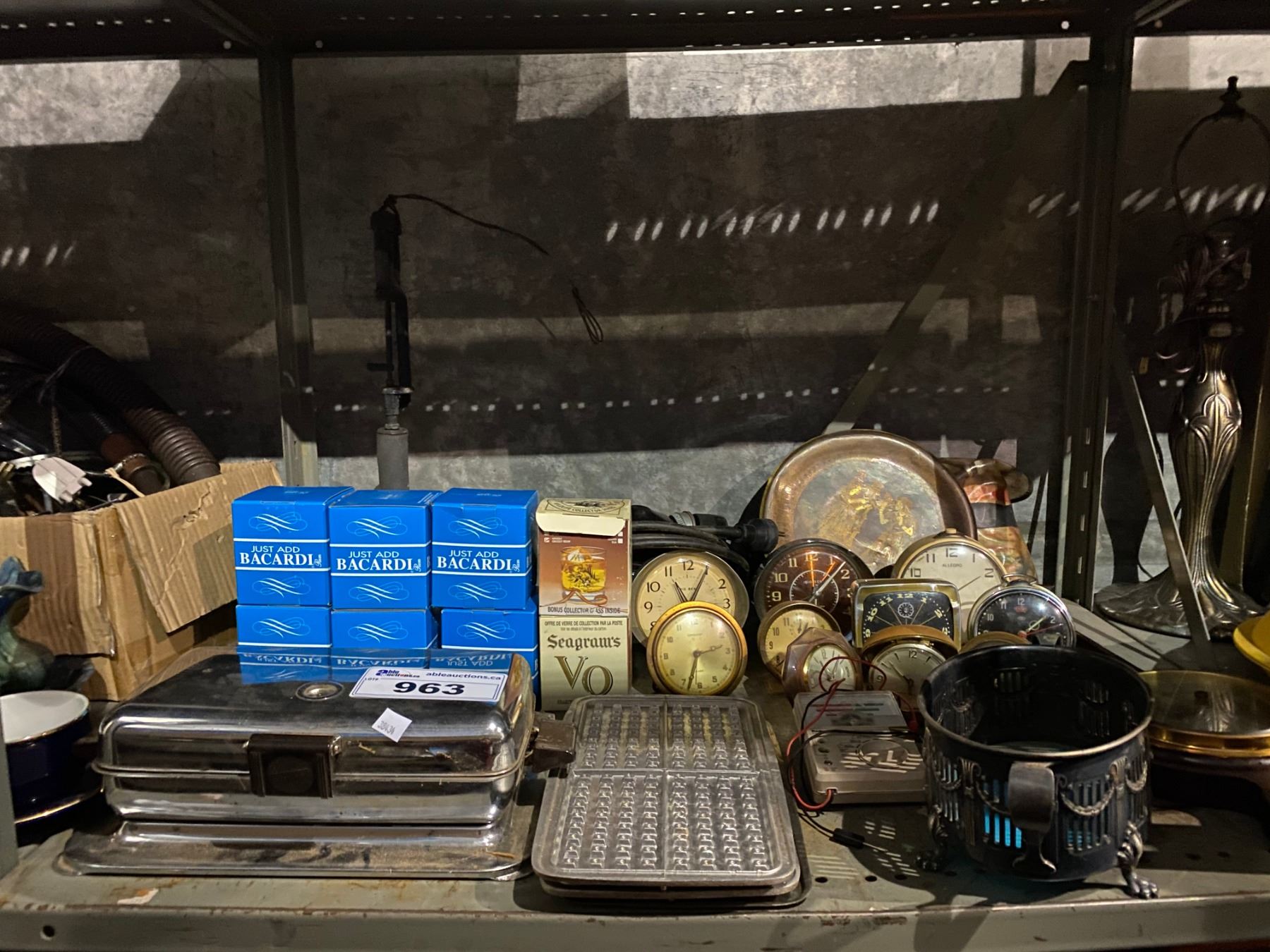 SHELF OF CLOCKS AND COLLECTABLES