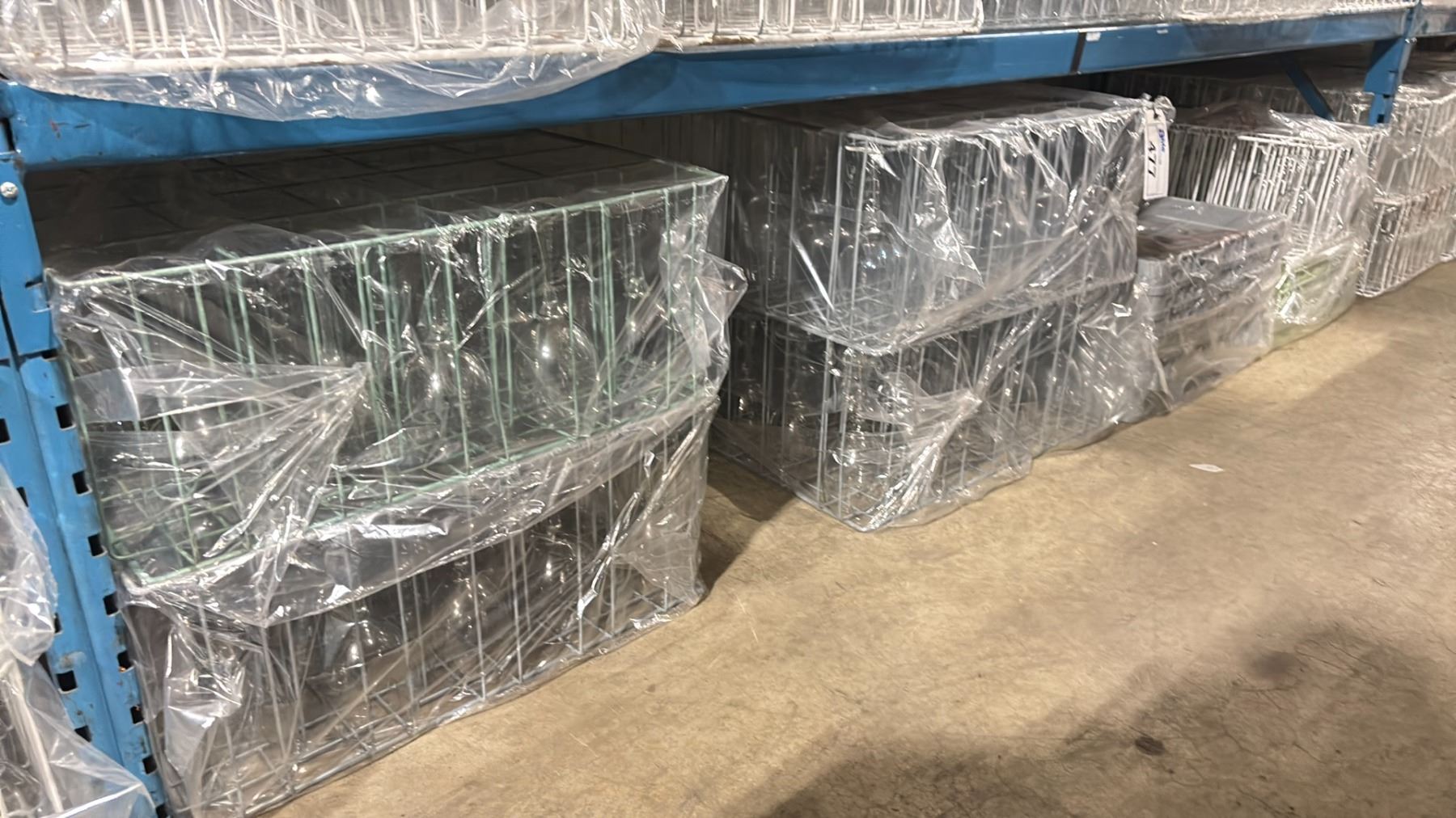 SHELF OF COMMERCIAL RESTAURANT TRAYS OF STEMMED WATER GLASSES, STEMLESS WINE GLASSES, MARTINI GLASSES & WINE GLASSES *TRAYS INCLUDED* ( APPROX. 130 PCS )