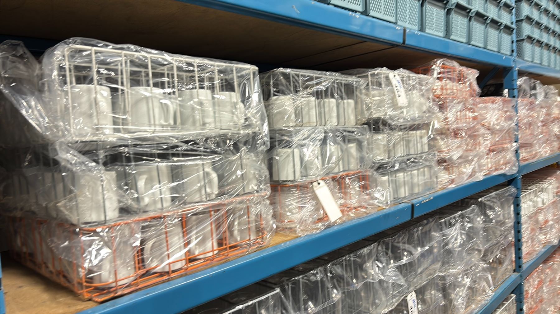 SHELF OF COMMERCIAL RESTAURANT TRAYS OF TEA MUGS & COFFEE MUGS *TRAYS INCLUDED* ( APPROX. 320 PCS )