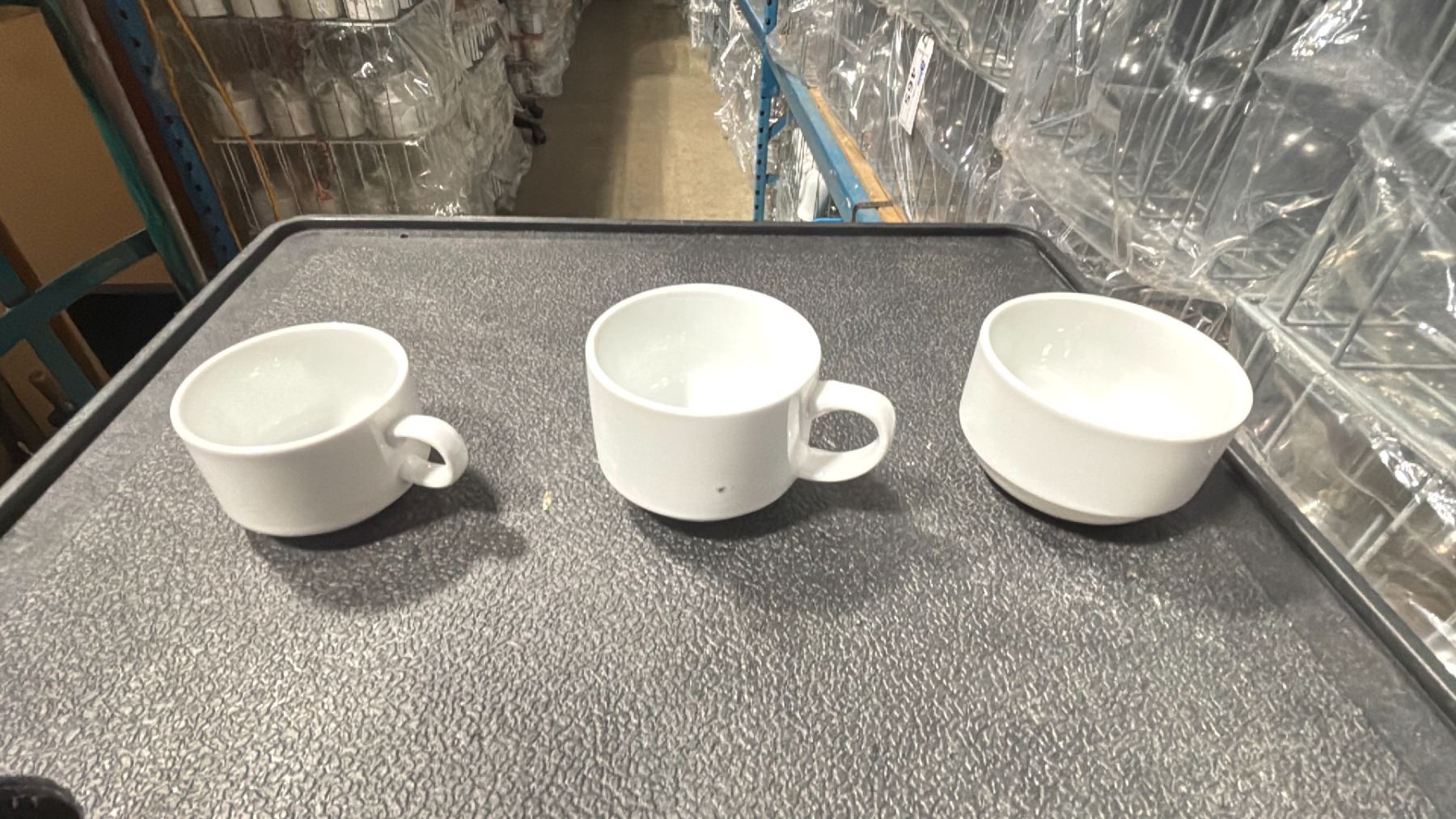 SHELF OF COMMERCIAL RESTAURANT TRAYS OF TEA MUGS & ESPRESSO MUGS *TRAYS INCLUDED* ( APPROX. 260 PCS )