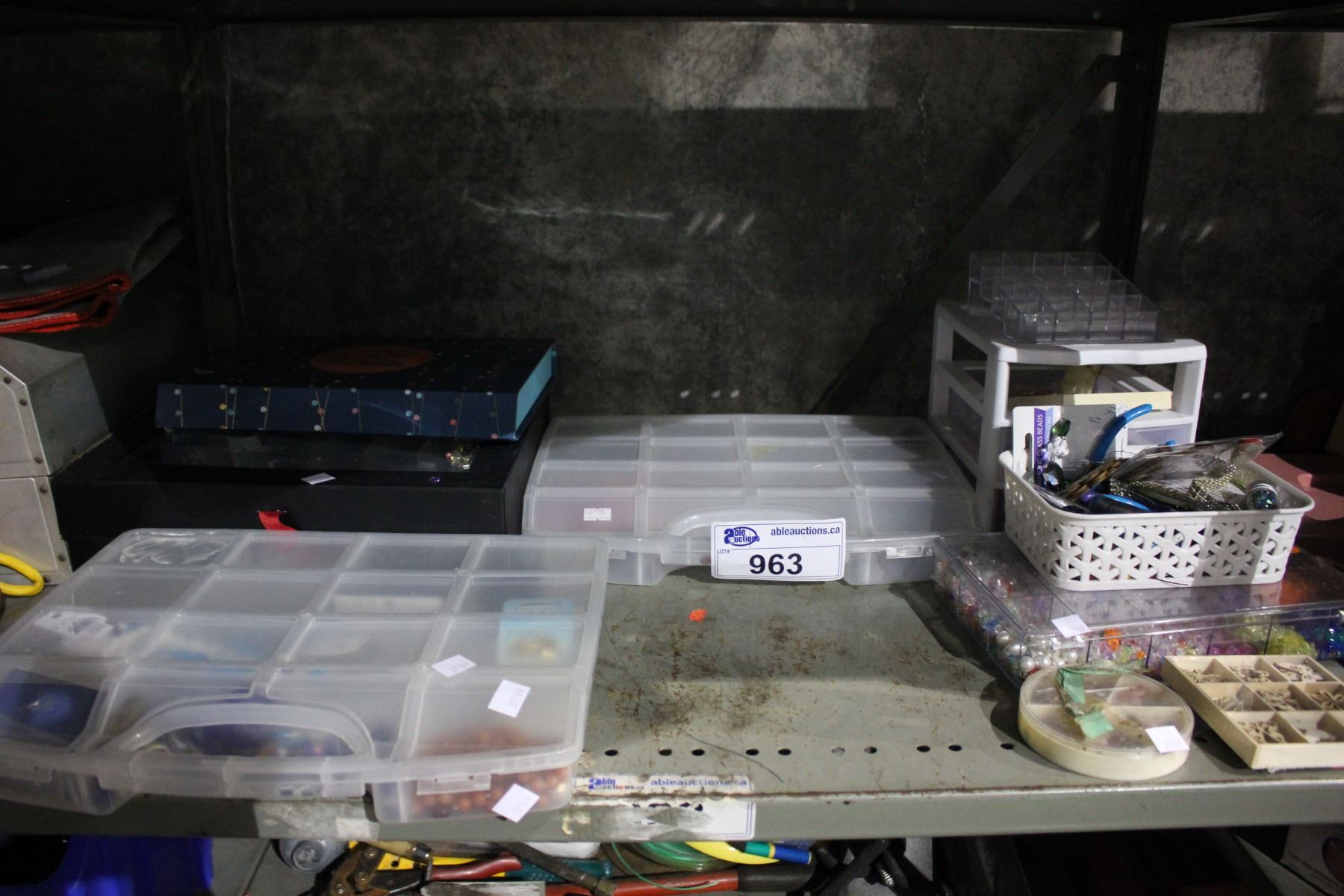 SHELF OF COSTUME JEWELRY AND BEADING MATERIAL