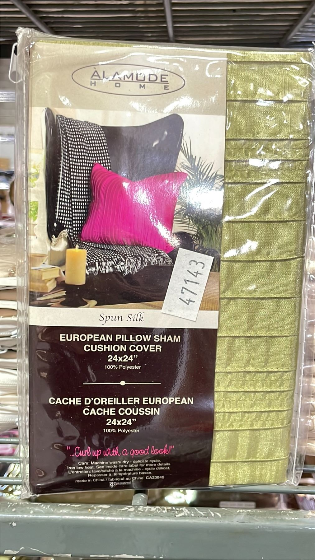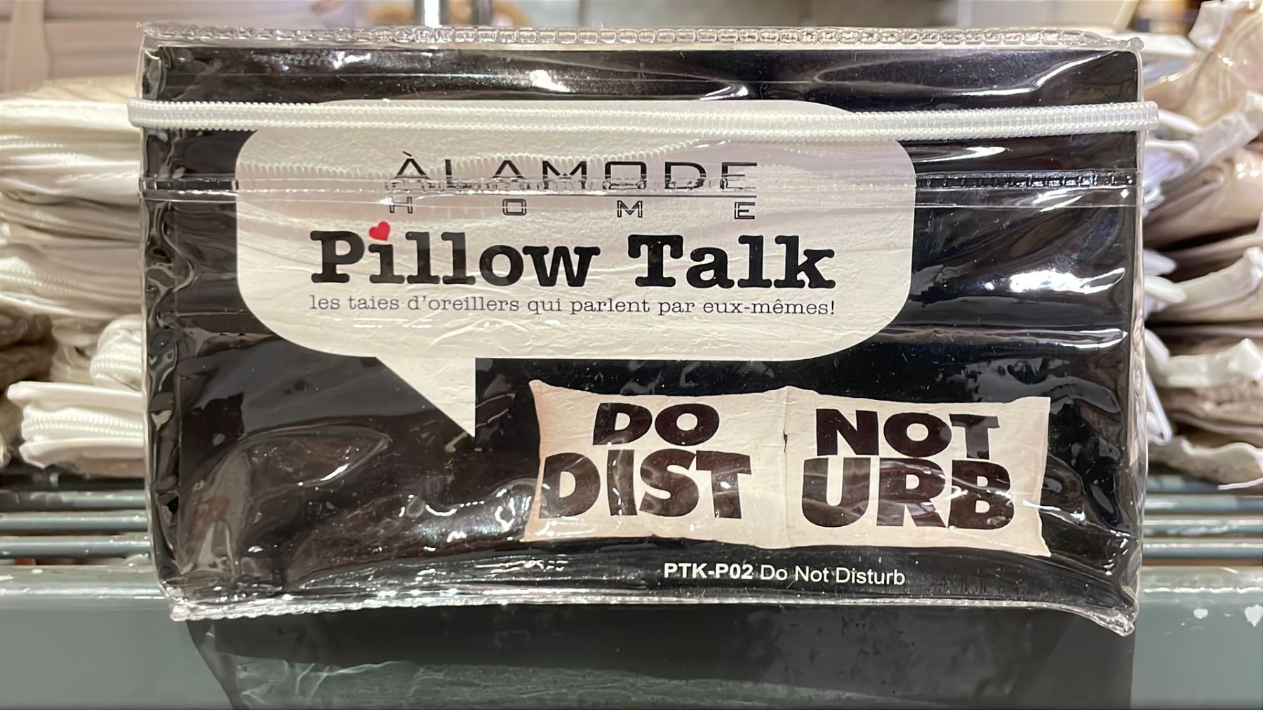 SHELF OF DECORATIVE EUROPEAN PILLOW SHAMS & PILLOW TALK 'DO NOT DISTURB' PILLOW SHAMS