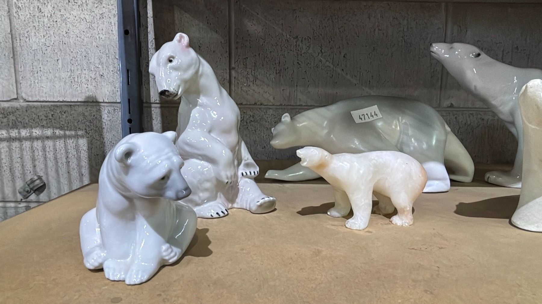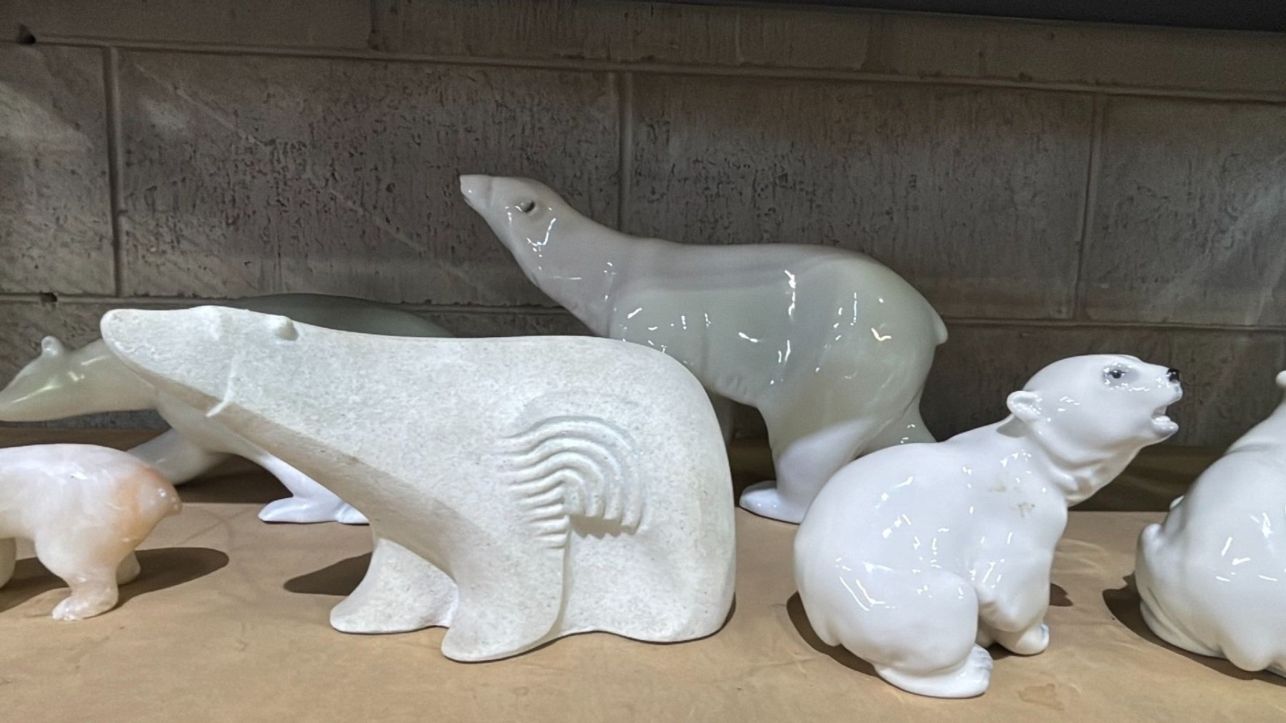 SHELF OF DECORATIVE POLAR BEARS