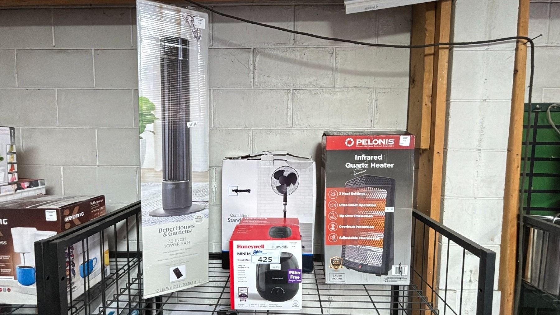 SHELF OF FANS, HUMIDIFIER & HEATERS