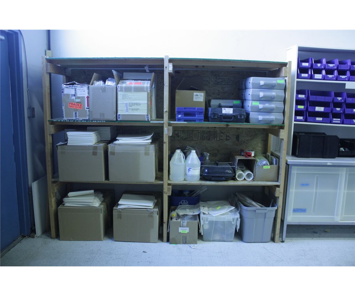 SHELF OF FILLER BOXES, MEDICAL DISPOSABLES AND MISC.