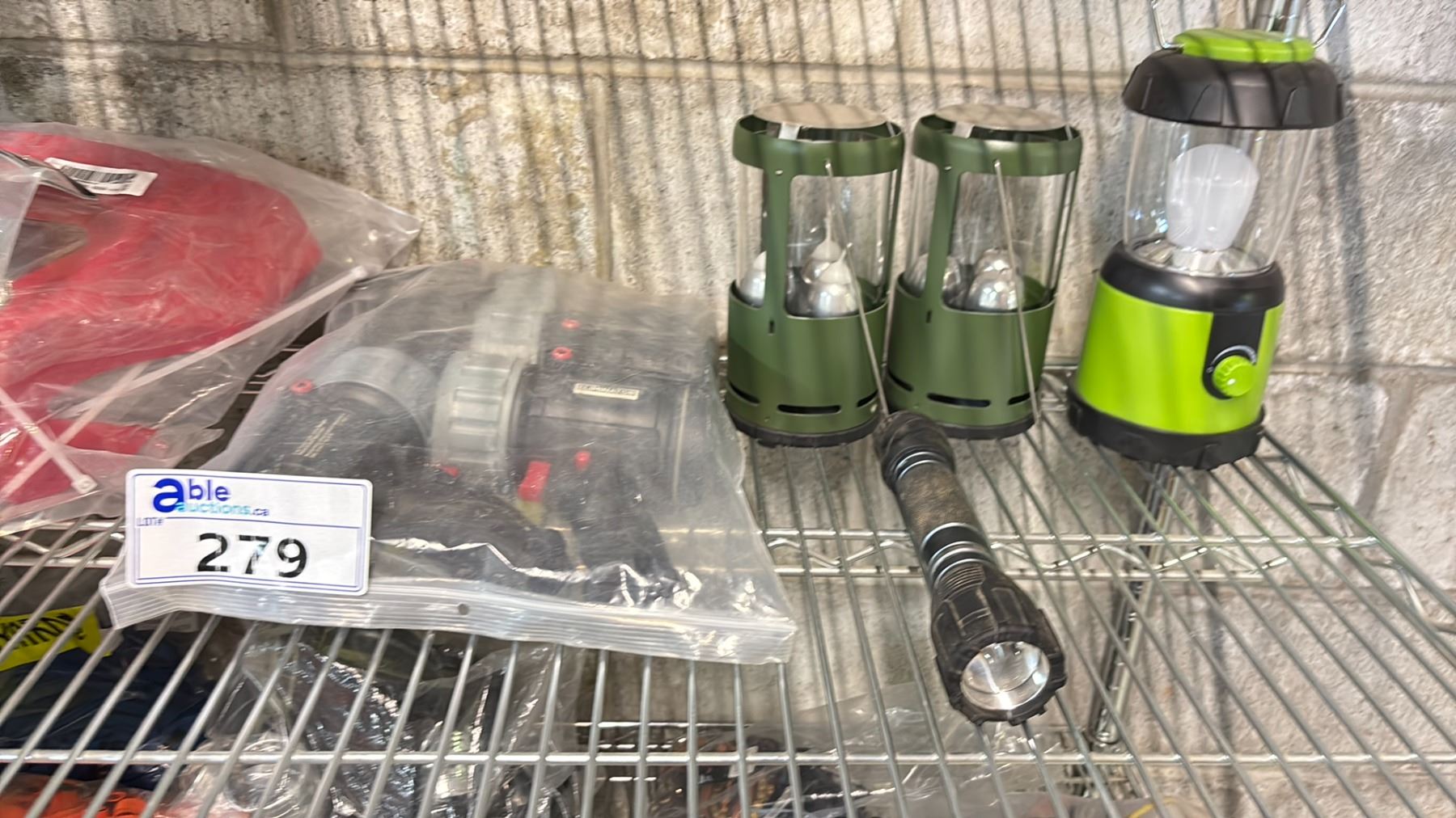 SHELF OF FLASHLIGHTS, LANTERNS & DIRT BIKE HEADLIGHTS