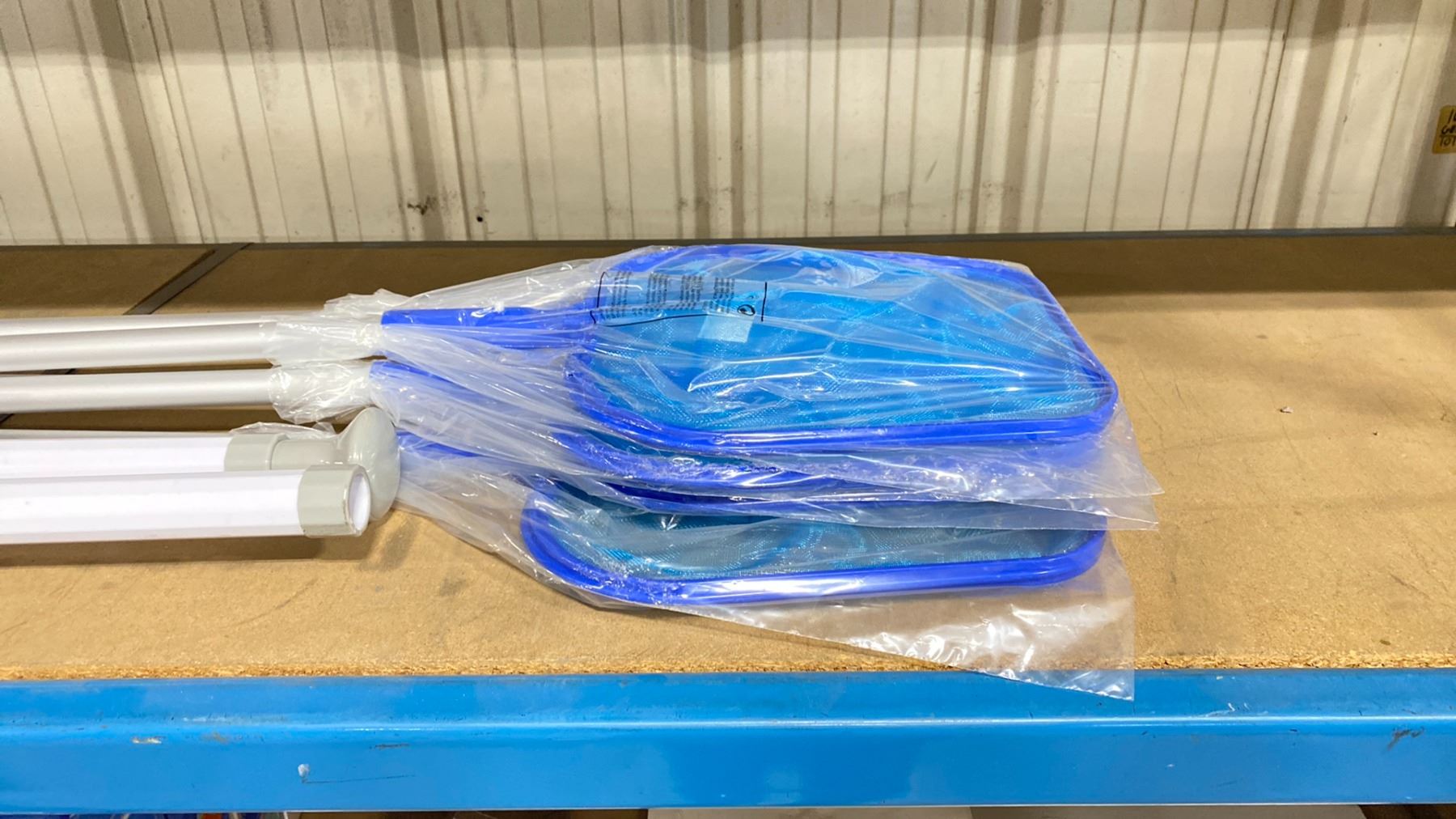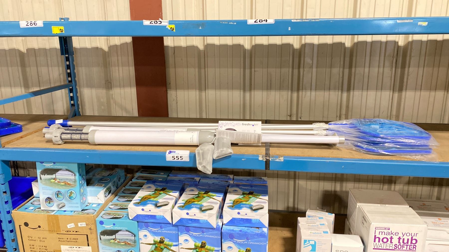 SHELF OF FRESHWATER SPA VACS & LONG HANDLED POOL SKIMMER NETS