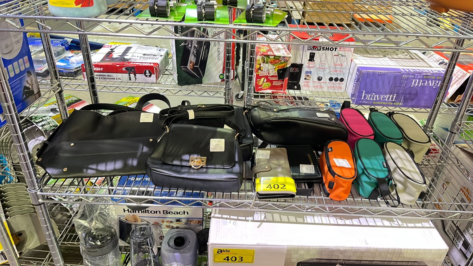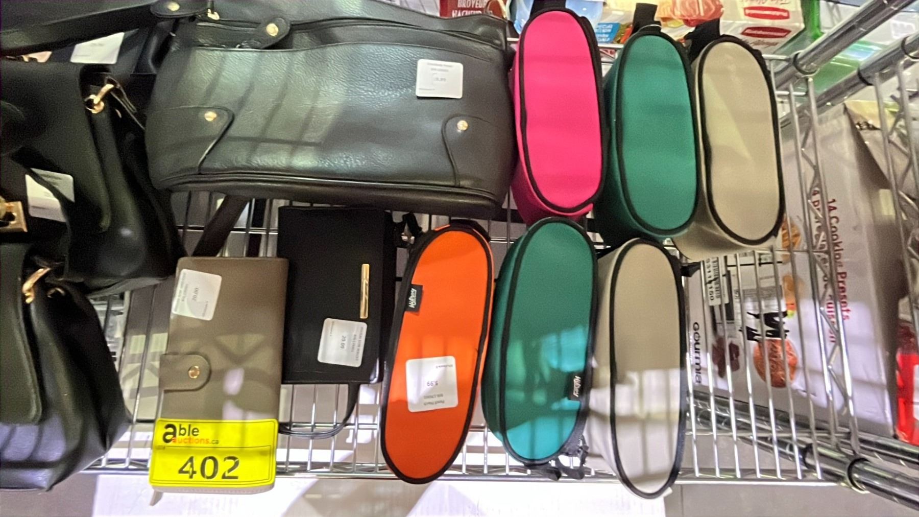 SHELF OF HANDBAGS, WALLETS & ASSORTED PENCIL CASES
